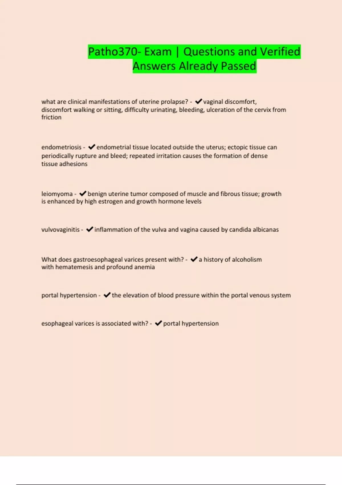 Patho370- Exam | Questions and Verified Answers Already Passed