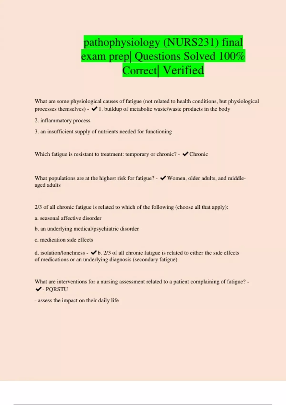What populations are at the highest risk for fatigue? - ✔Women, older adults, and middle-