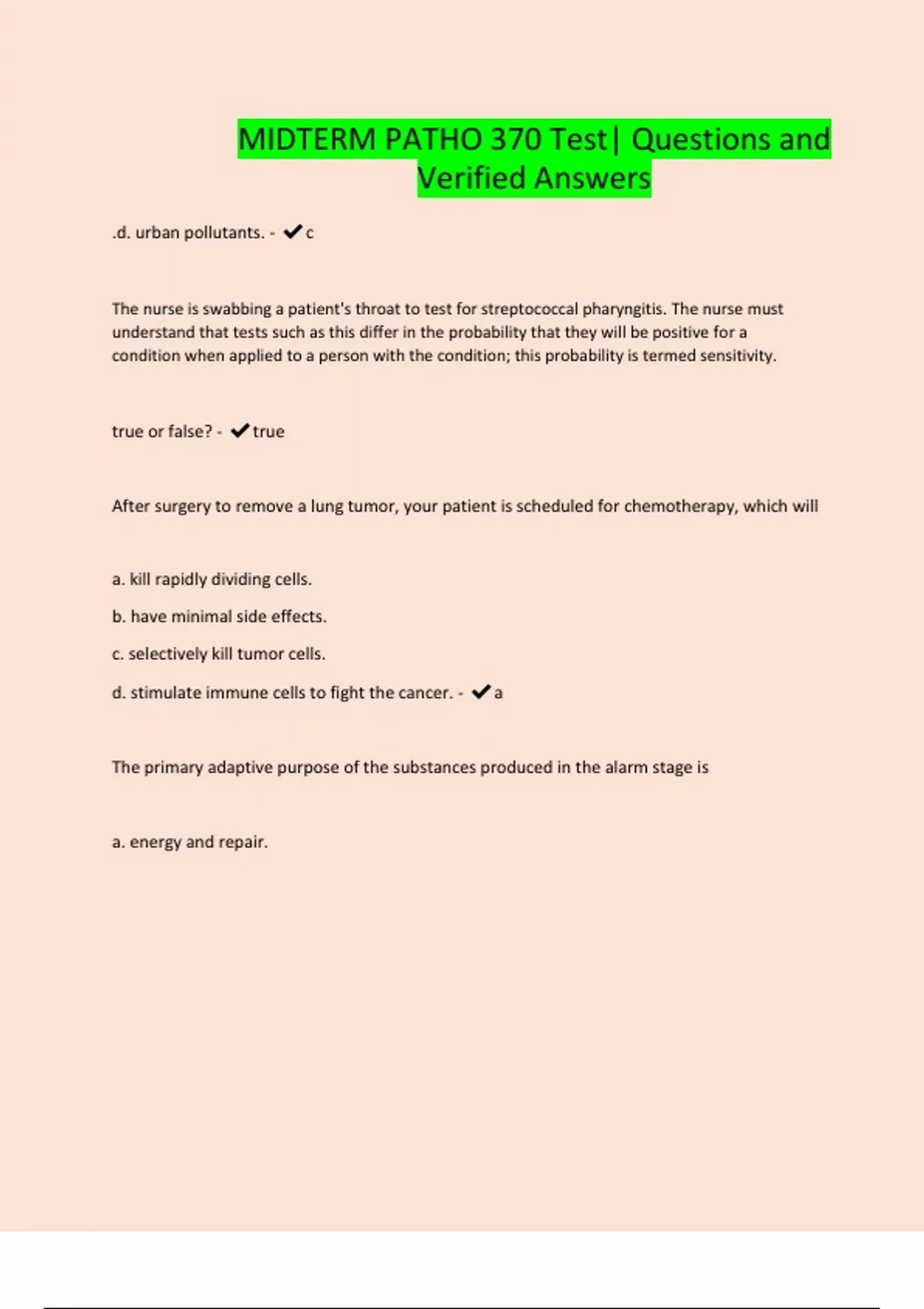 MIDTERM PATHO 370 Test| Questions and