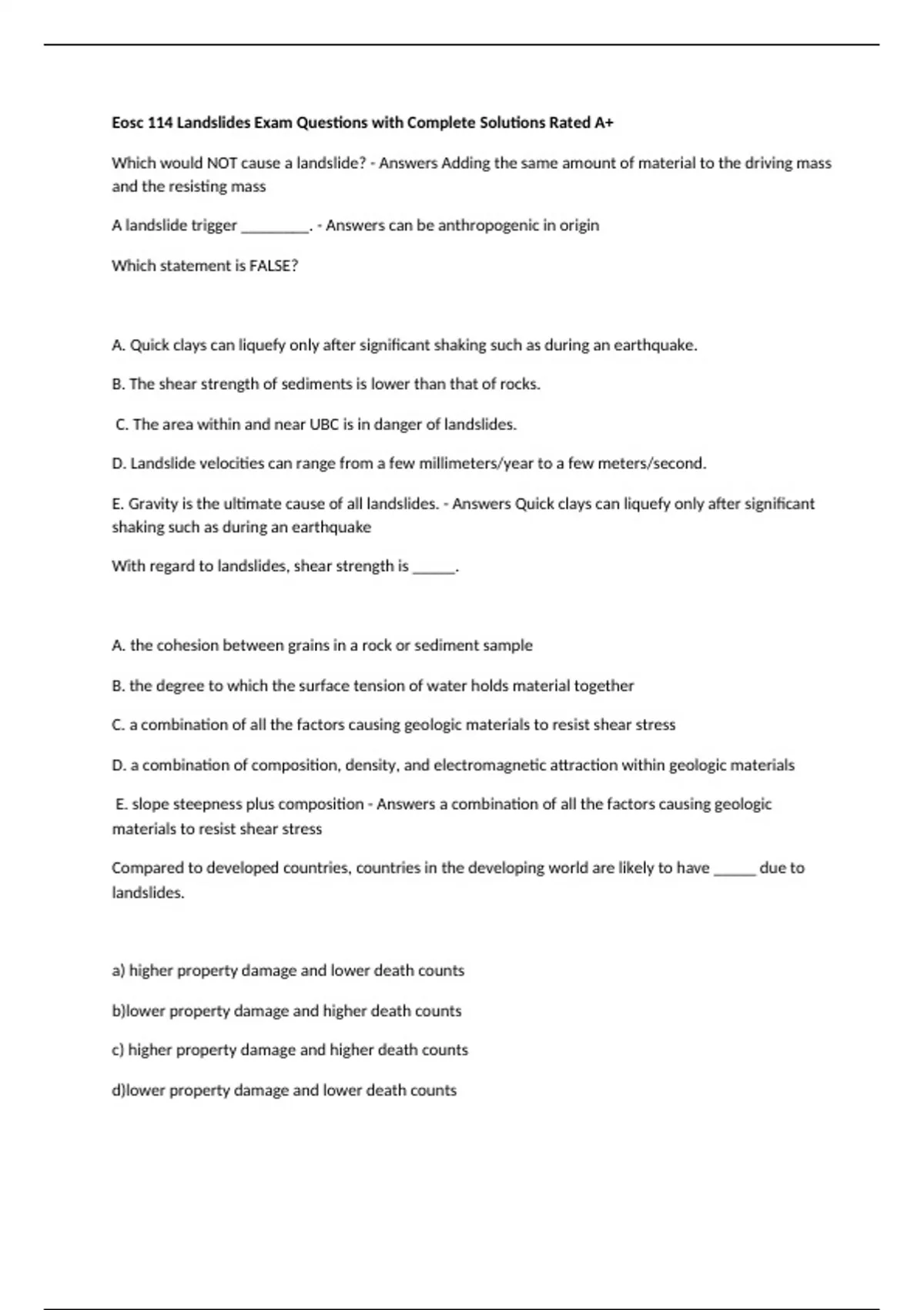 E. Gravity is the ultimate cause of all landslides. - Answers Quick clays can liquefy only after significant