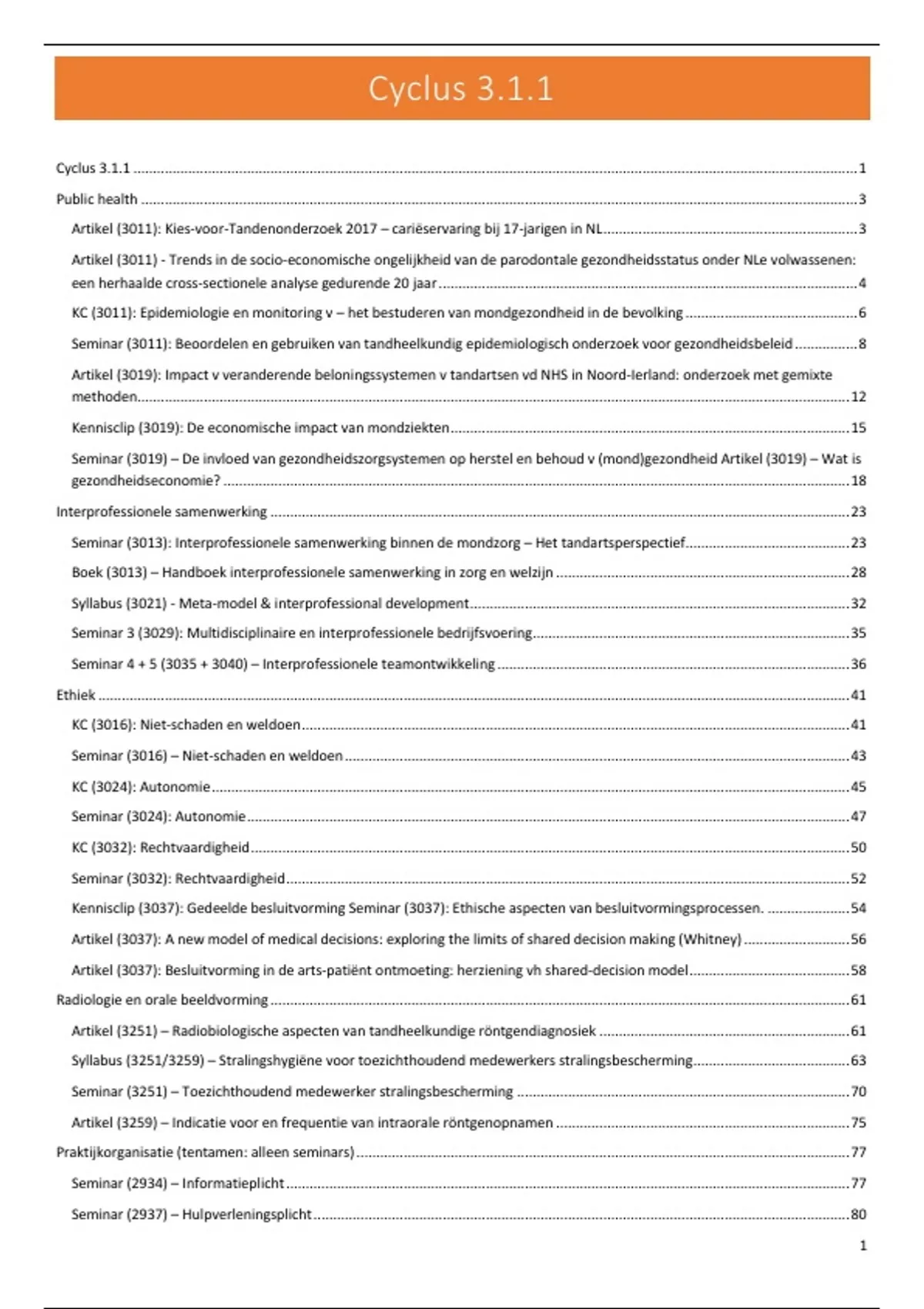 Praktijkorganisatie (tentamen: alleen seminars) .............................................................................................................................. 77
