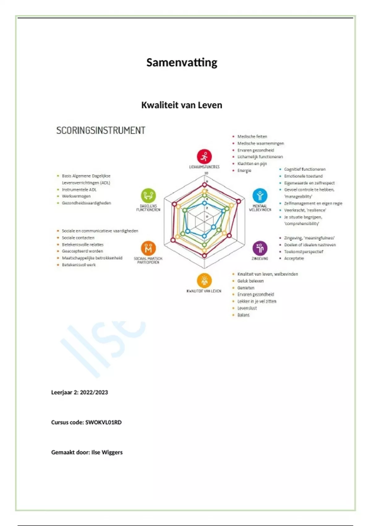 Kwaliteit van Leven Samenvatting 8 behaald