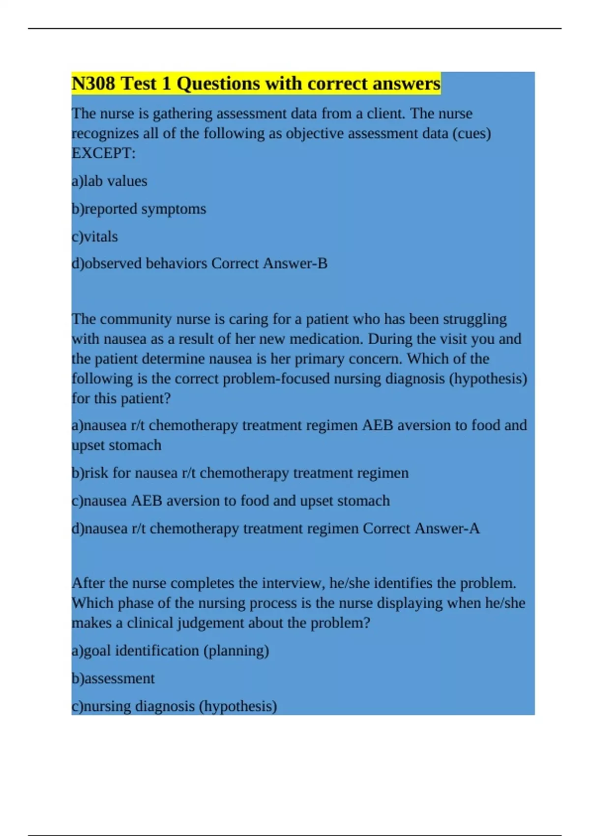 d)nausea r/t chemotherapy treatment regimen Correct Answer-A