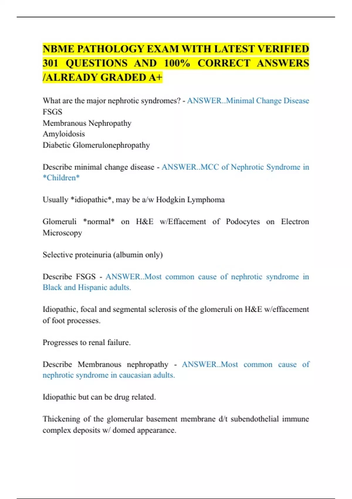 NBME PATHOLOGY EXAM WITH LATEST VERIFIED 301 QUESTIONS AND 100% CORRECT ANSWERS /ALREADY GRADED A+