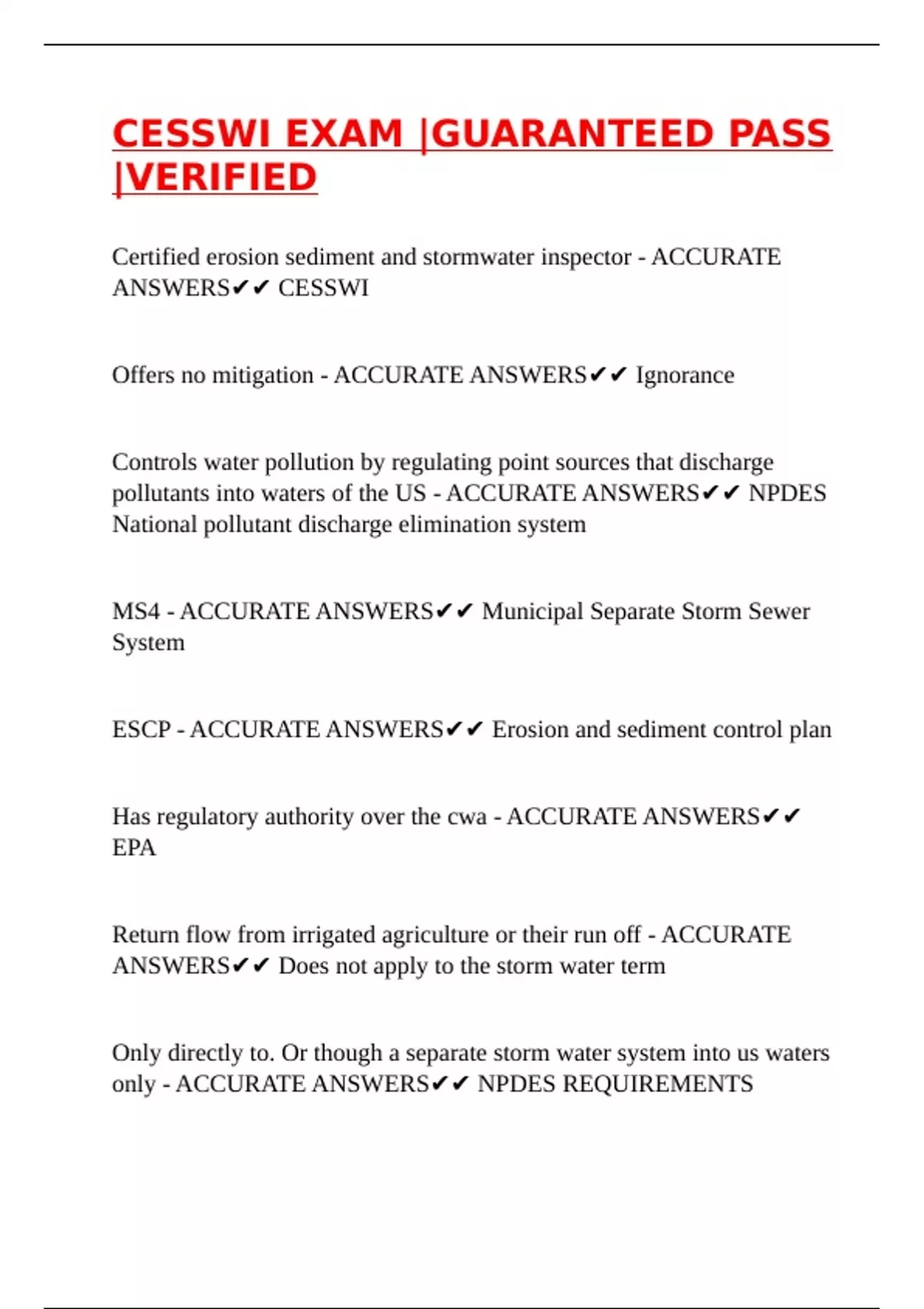 ANSWERS✔✔ CESSWI