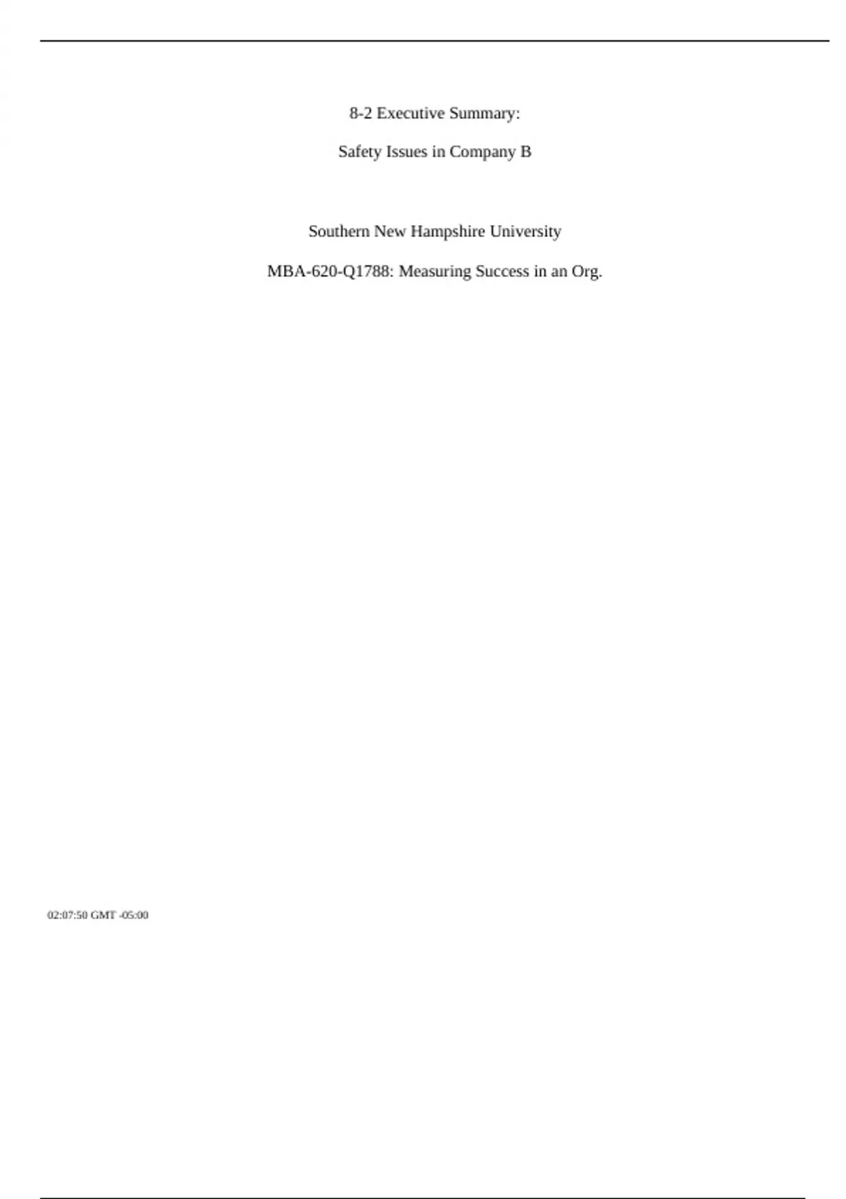 8-2 Executive Summary: Safety Issues in Company B Southern New Hampshire University MBA-620-Q1788: Measuring Success in an Org. 02:07:50 GMT -05:00 Summary of Situation: After the previous performance analysis, additional research was conducted to ensure all information is up to date for Company A and Company B. In this research it was discovered that Company B has had two of its forty aircraft grounded over the last month. These groundings were due to technical issues, but one of the issues could have been an FAA violation. Having 5% of their aging fleet inoperable has subsequently caused a 10% drop in revenues over the last month. The subsequent investigations into Company B€™s aircraft & mitigation practices have caused an increase of $80,000 to their operating costs. Impact on Factors Other Than Revenue: Company B is already experiencing poor customer retention rates averagin