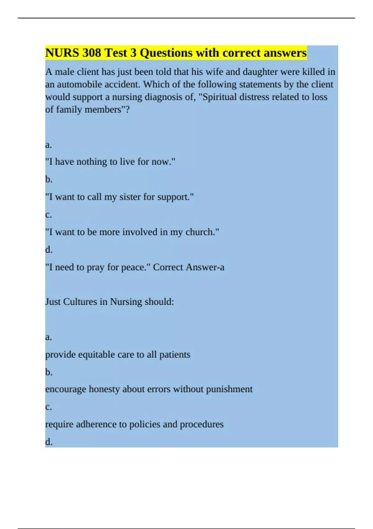"I need to pray for peace." Correct Answer-a