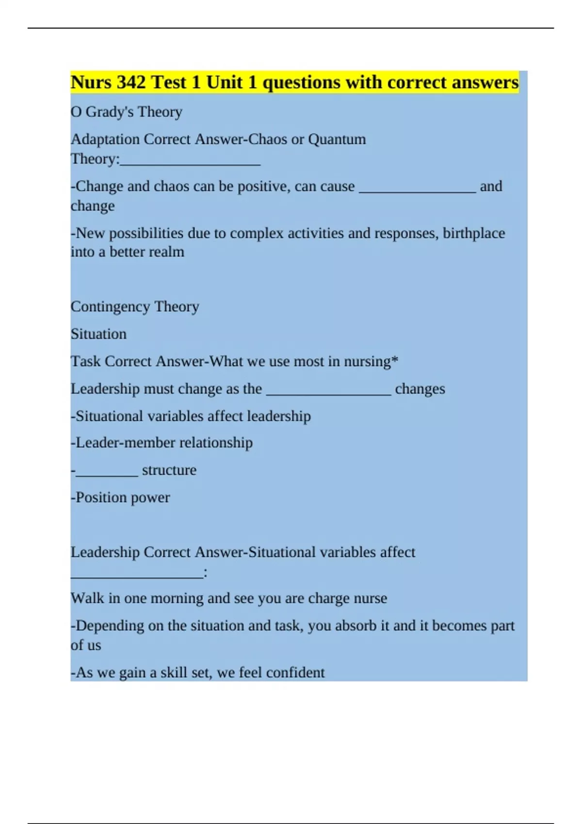 Nurs 342 Test 1 Unit 1 questions with correct answers