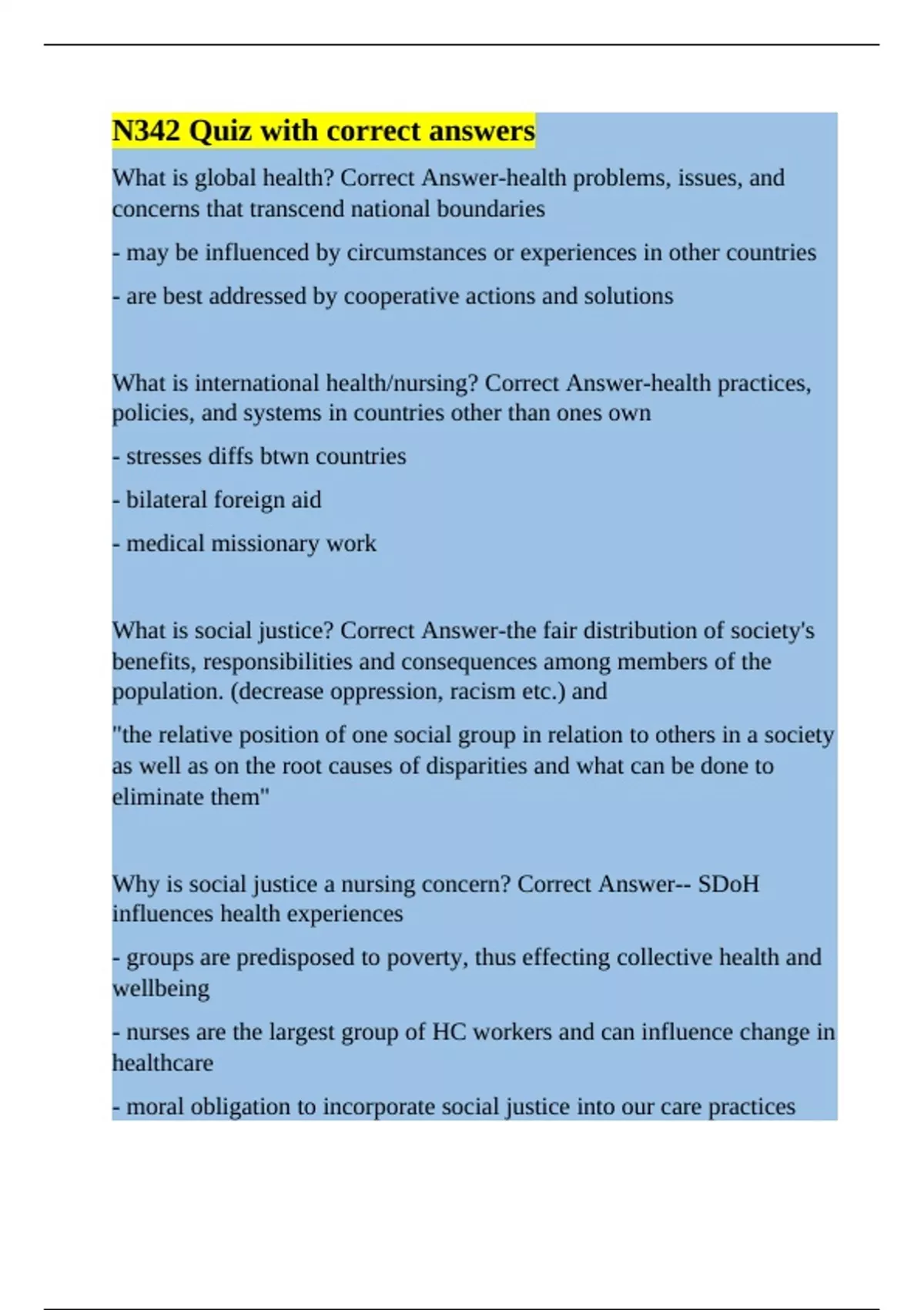 Why is social justice a nursing concern? Correct Answer-- SDoH