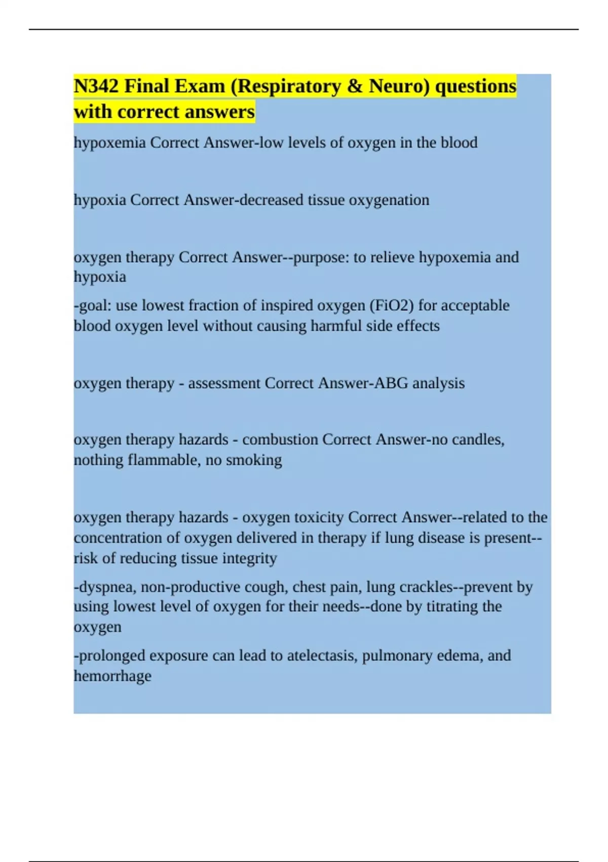N342 Final Exam (Respiratory & Neuro) questions with correct answers
