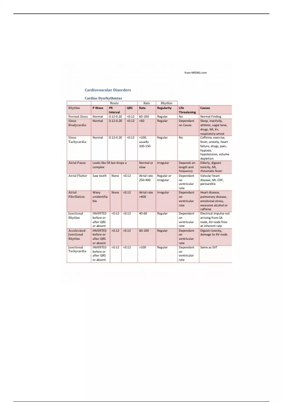 Rhythm P Wave PR QRS Rate Regularity Life Causes