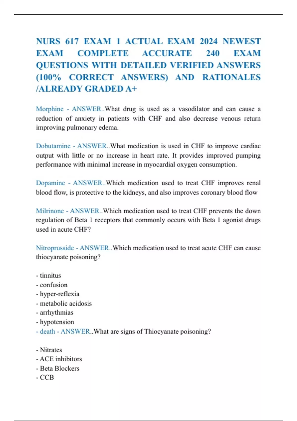 NURS 617 EXAM 1 ACTUAL EXAM 2024 NEWEST EXAM COMPLETE ACCURATE 240 EXAM QUESTIONS WITH DETAILED VERIFIED ANSWERS (100% CORRECT ANSWERS) AND RATIONALES /ALREADY GRADED A+