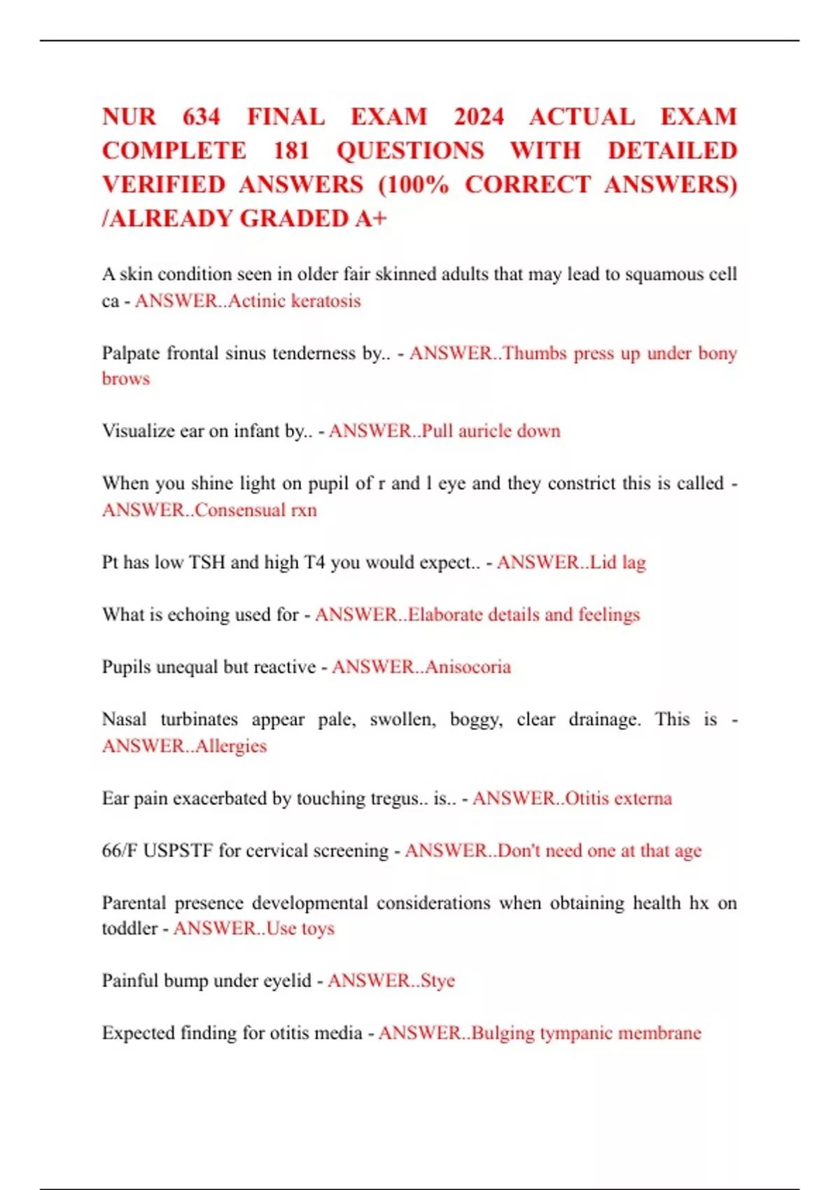 NUR 634 FINAL EXAM 2024 ACTUAL EXAM COMPLETE 181 QUESTIONS WITH DETAILED VERIFIED ANSWERS (100% CORRECT ANSWERS) /ALREADY GRADED A+