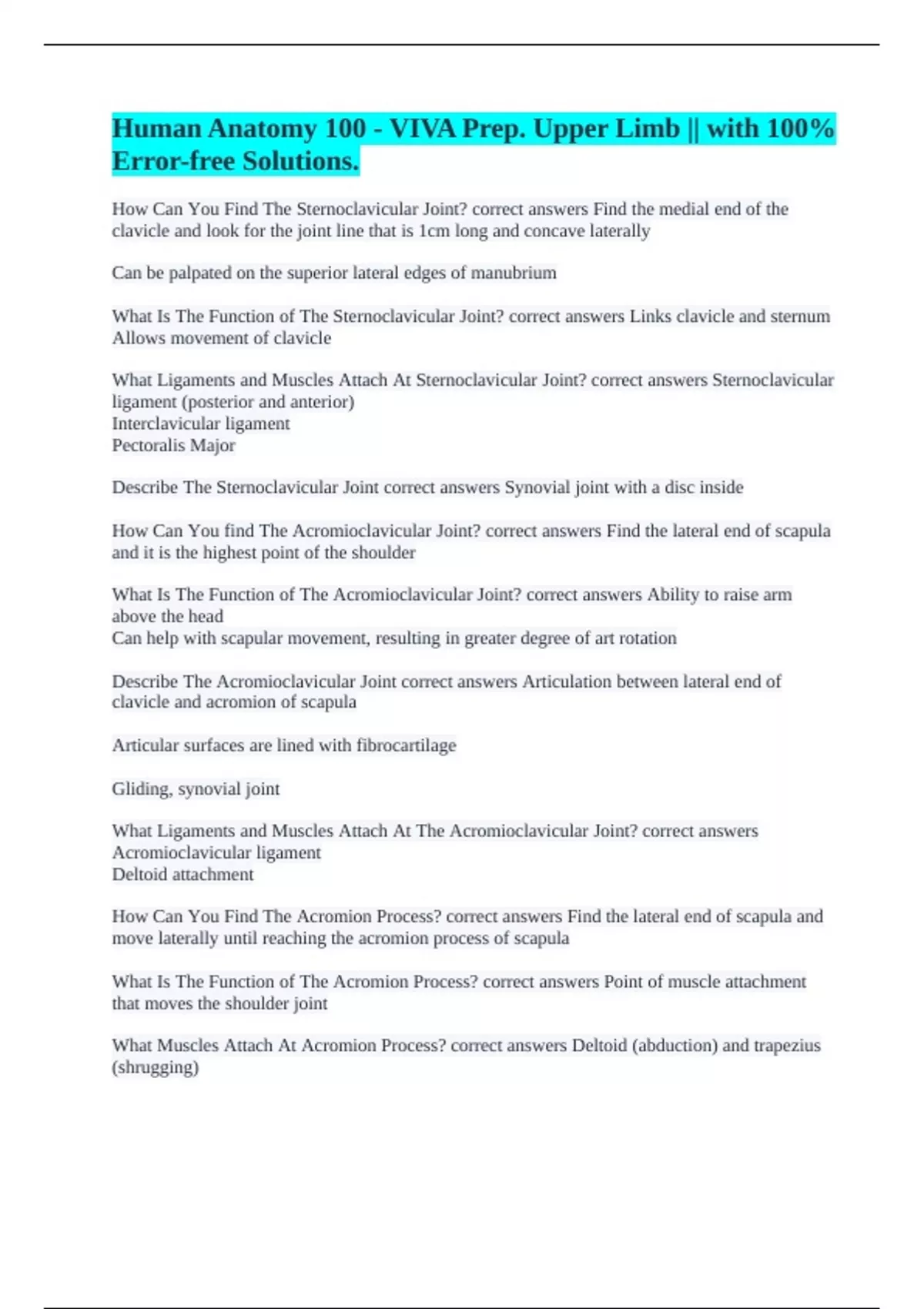 , Describe The Acromion Process correct answers Large bony projection at superior end of