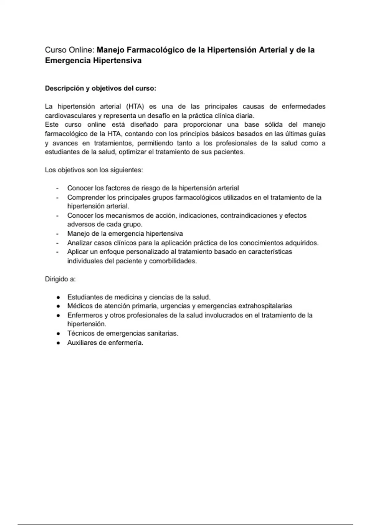 renales y cerebrovasculares. Esta formación se centrará en las estrategias farmacológicas