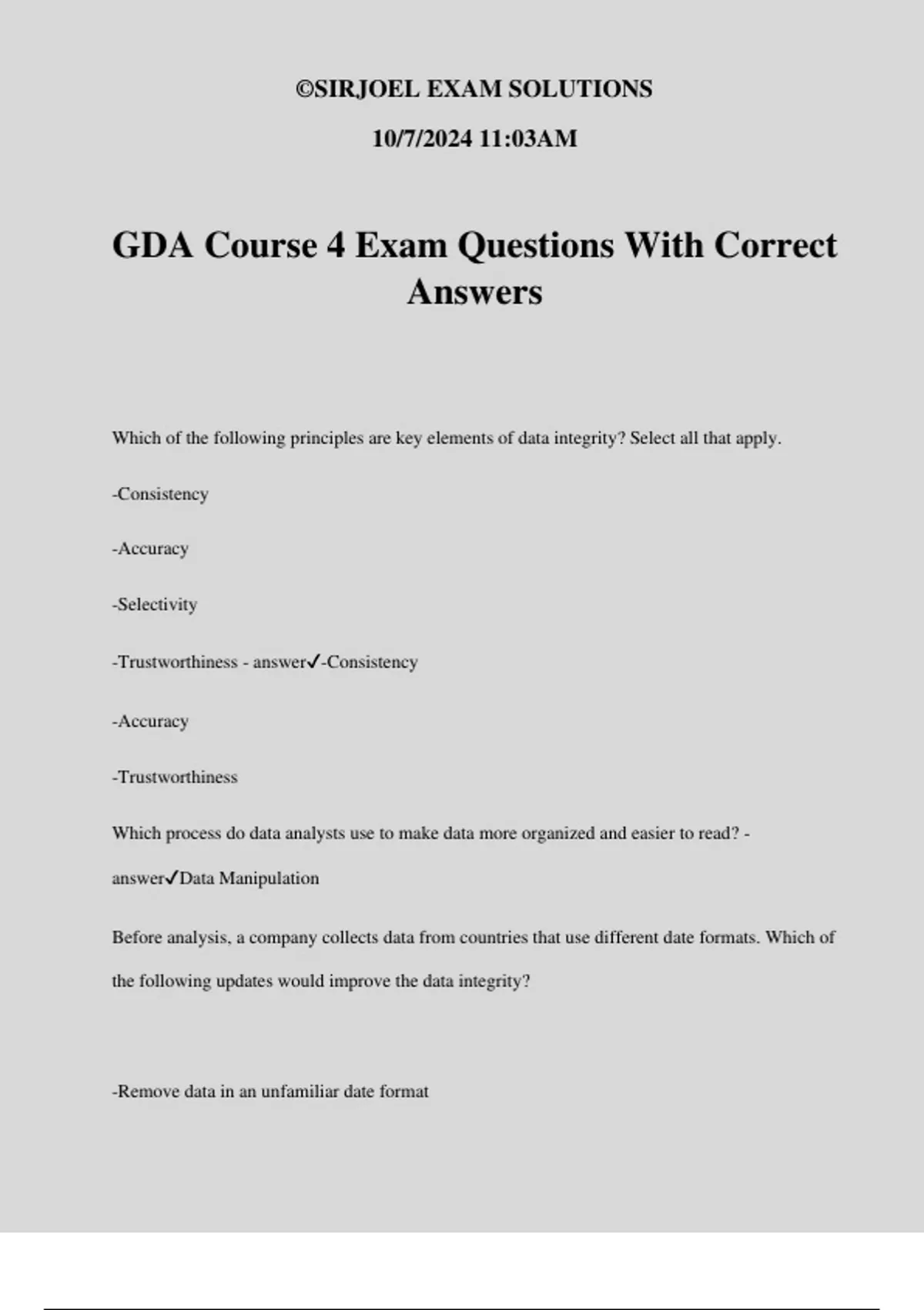 GDA Course 4 Exam Questions With Correct