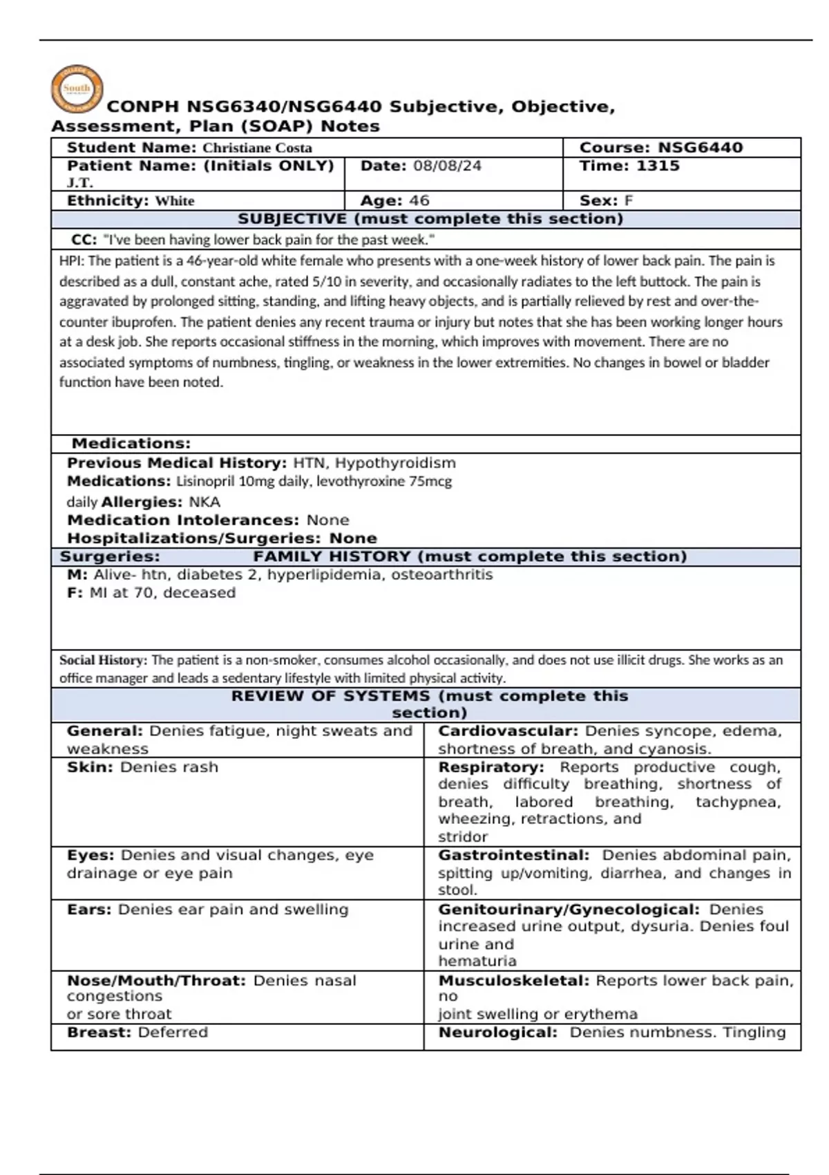 Student Name: Christiane Costa Course: NSG6440