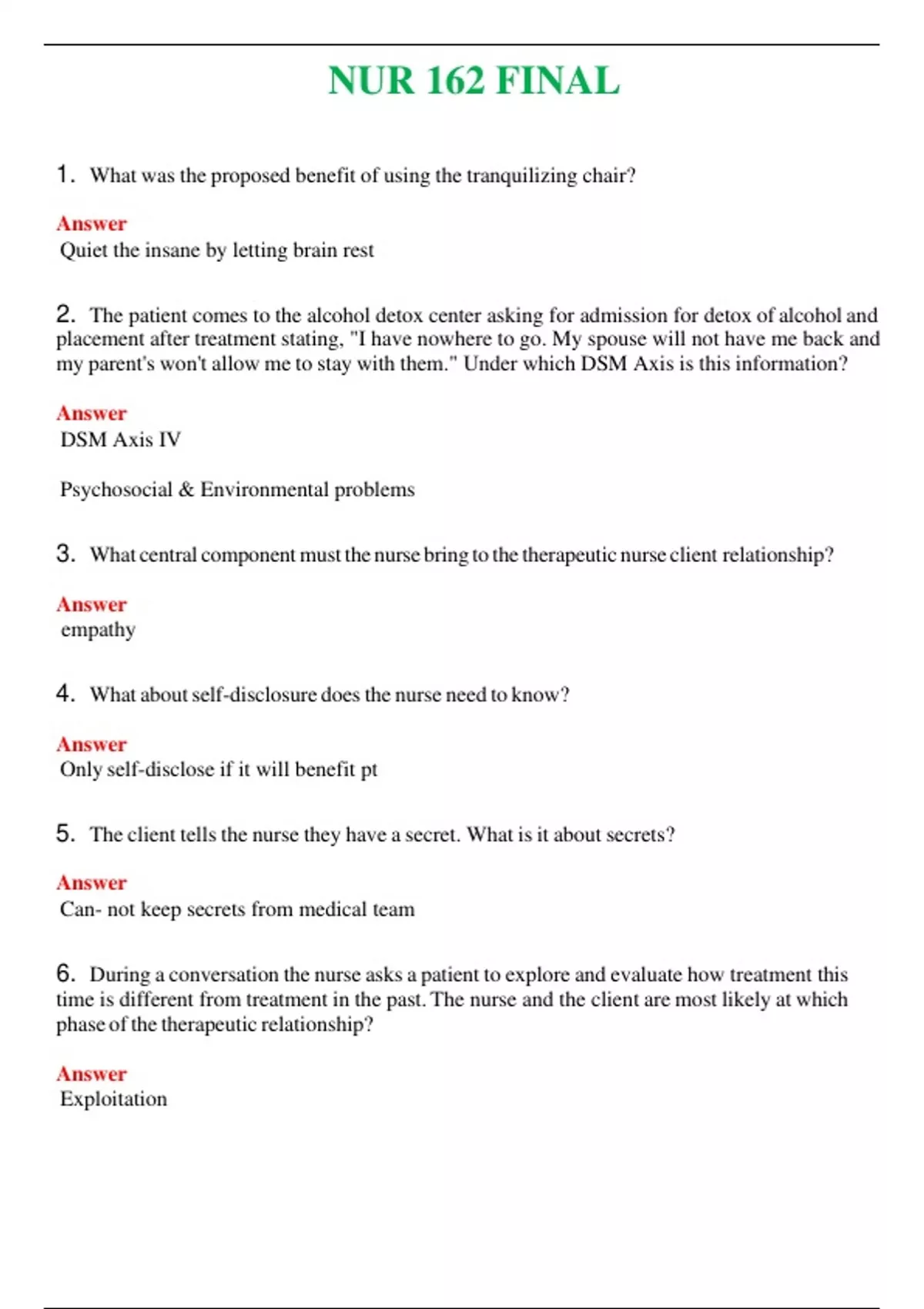 6. During a conversation the nurse asks a patient to explore and evaluate how treatment this