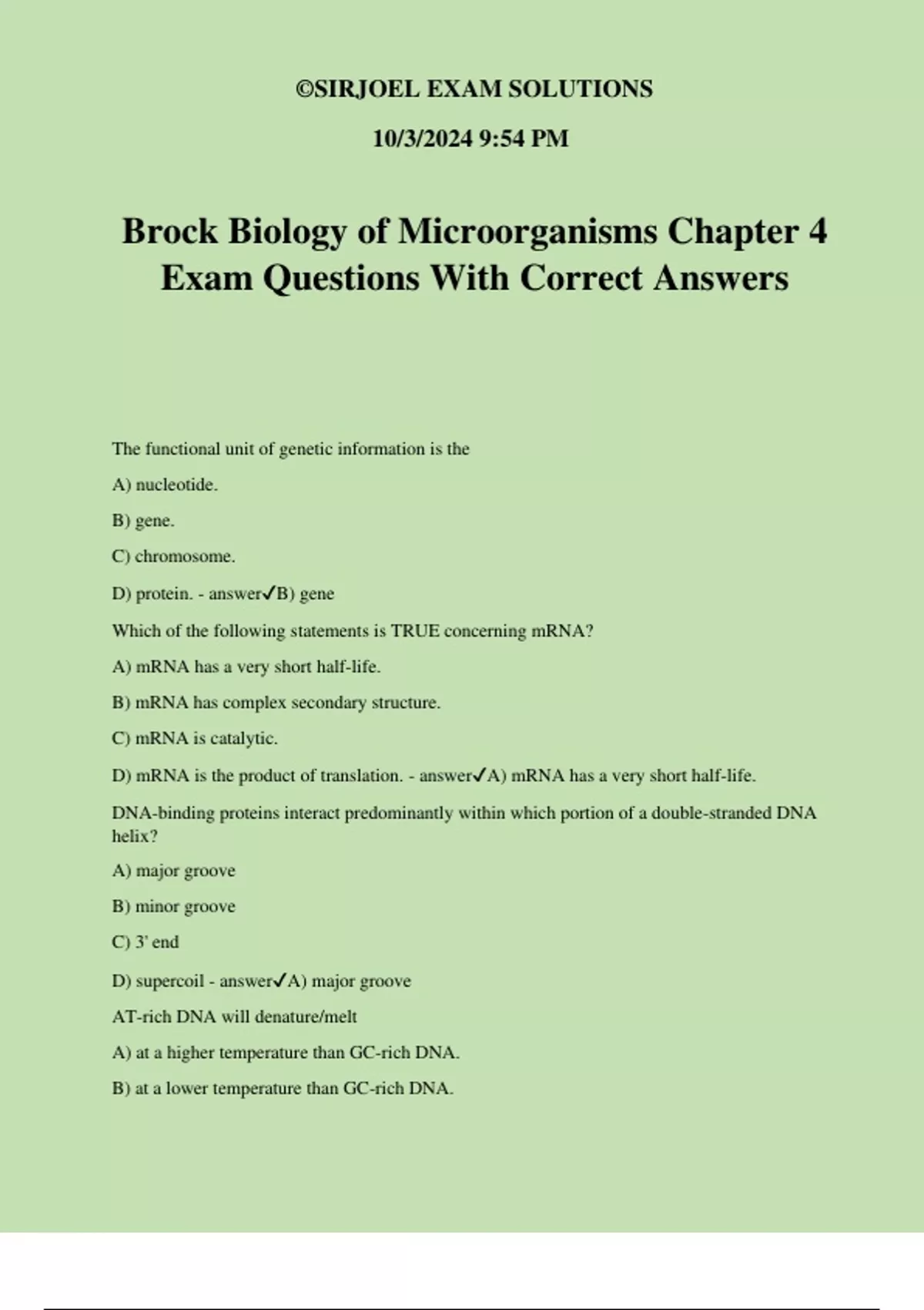 D) mRNA is the product of translation. - answer✔A) mRNA has a very short half-life.