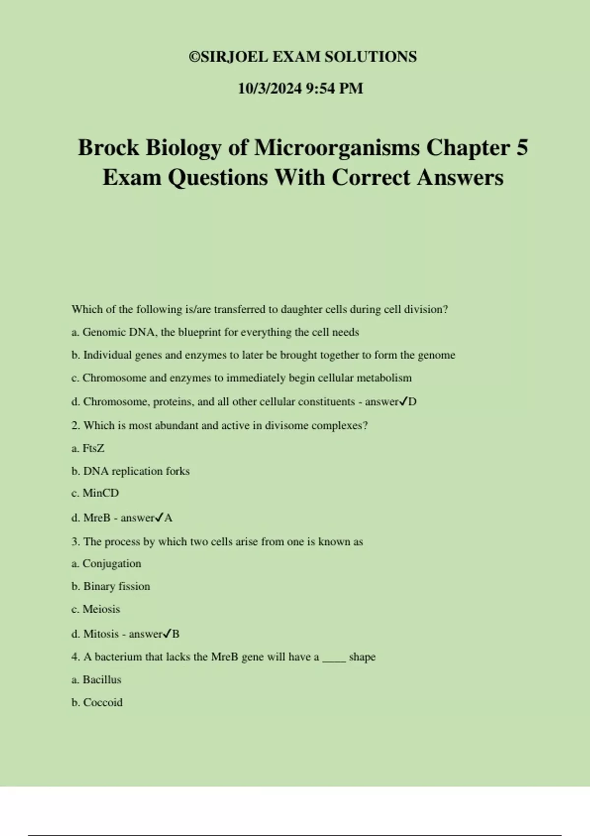 d. MreB - answer✔A