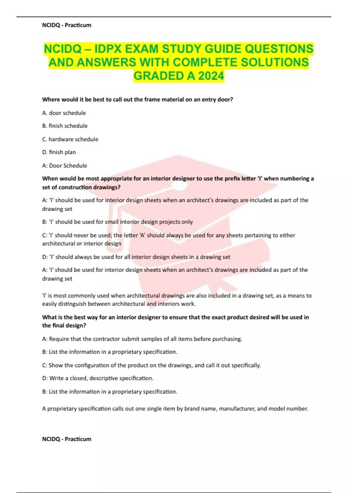 NCIDQ – IDPX EXAM STUDY GUIDE QUESTIONS