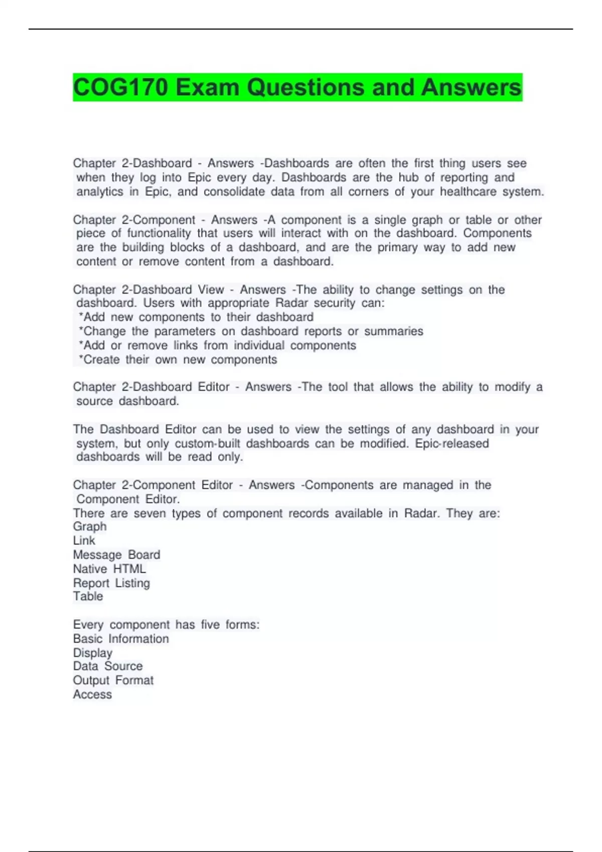 COG170 Exam Questions and Answers