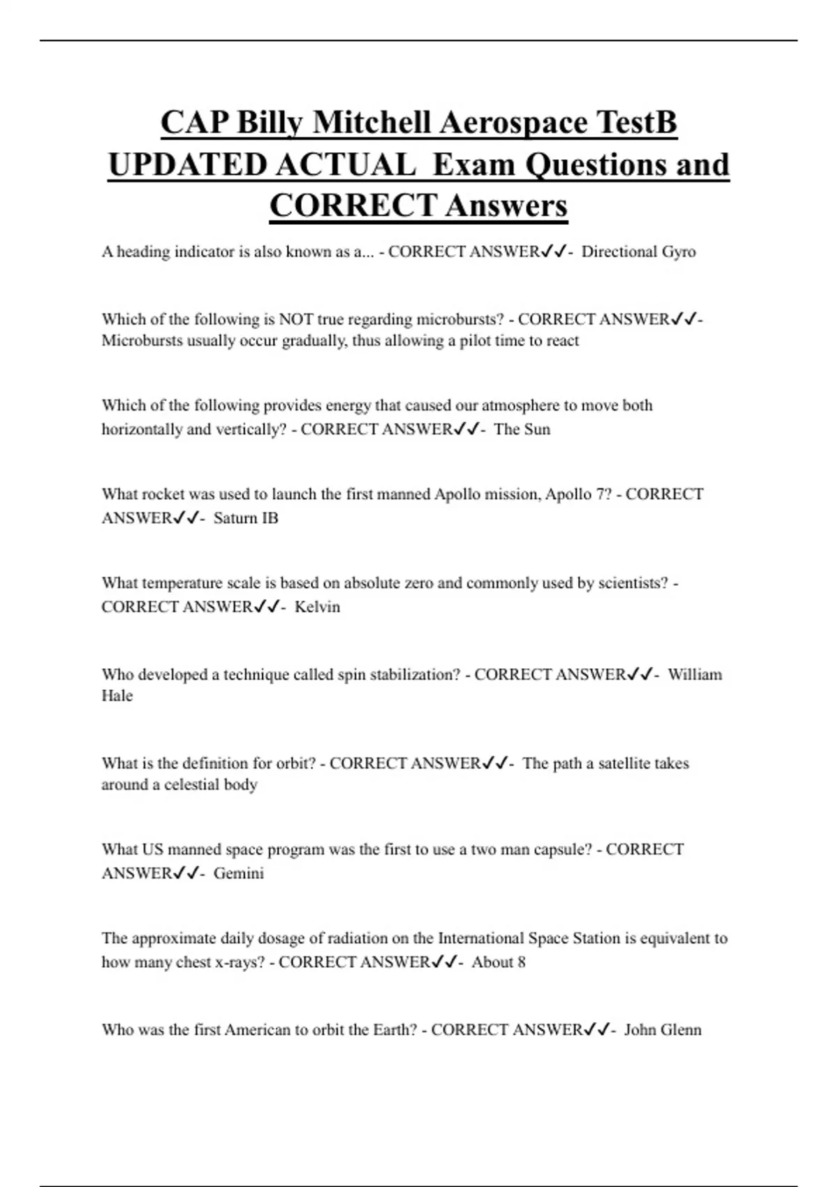CORRECT Answers