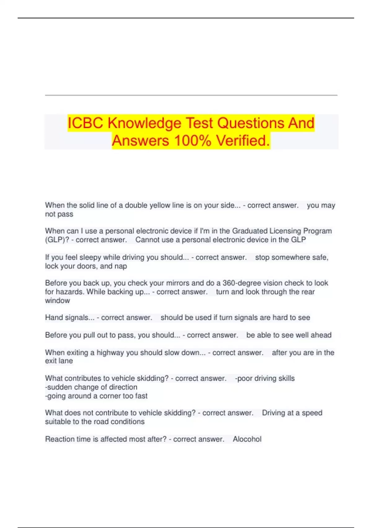 When exiting a highway you should slow down... - correct answer. after you are in the