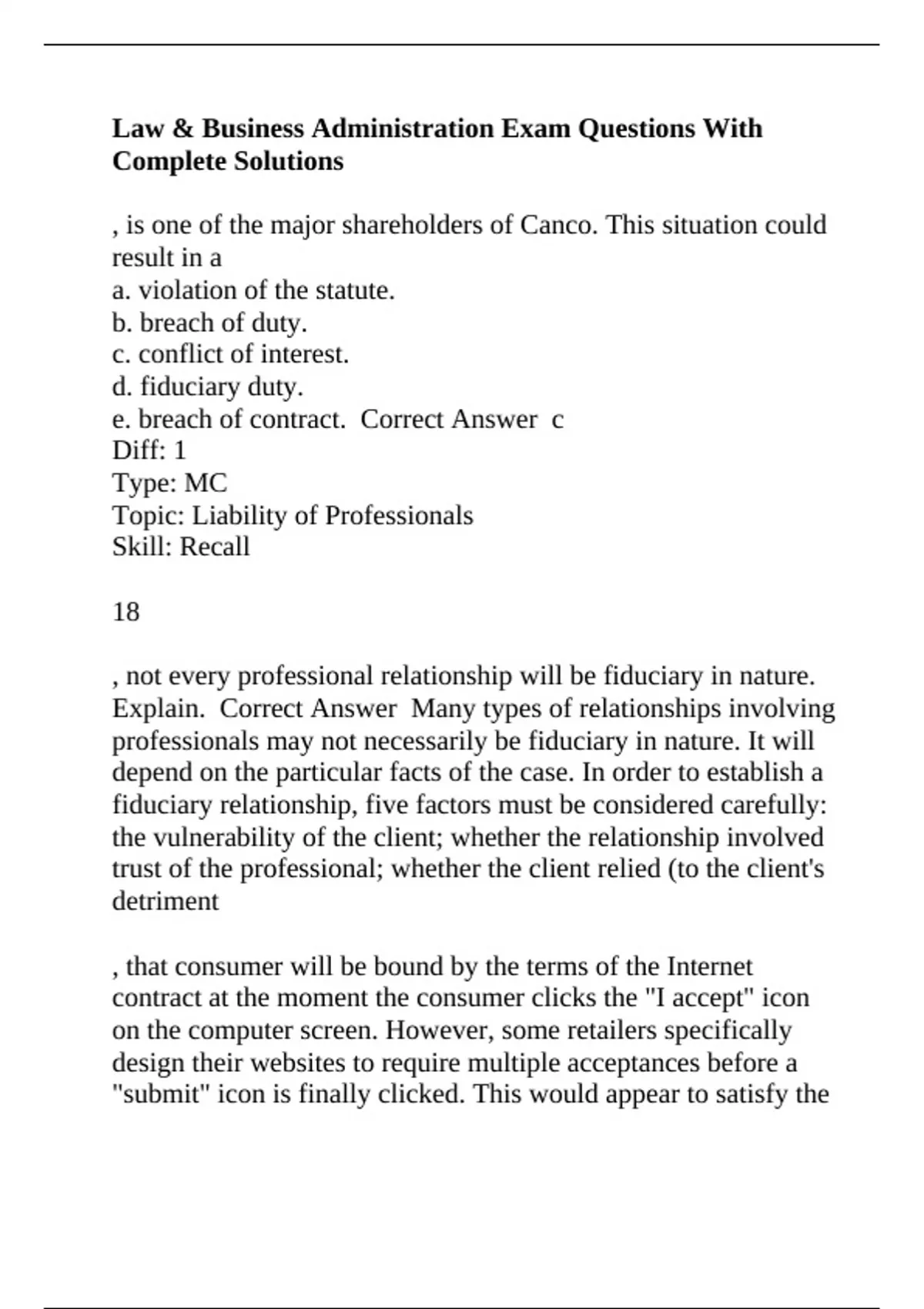 e. breach of contract. Correct Answer c