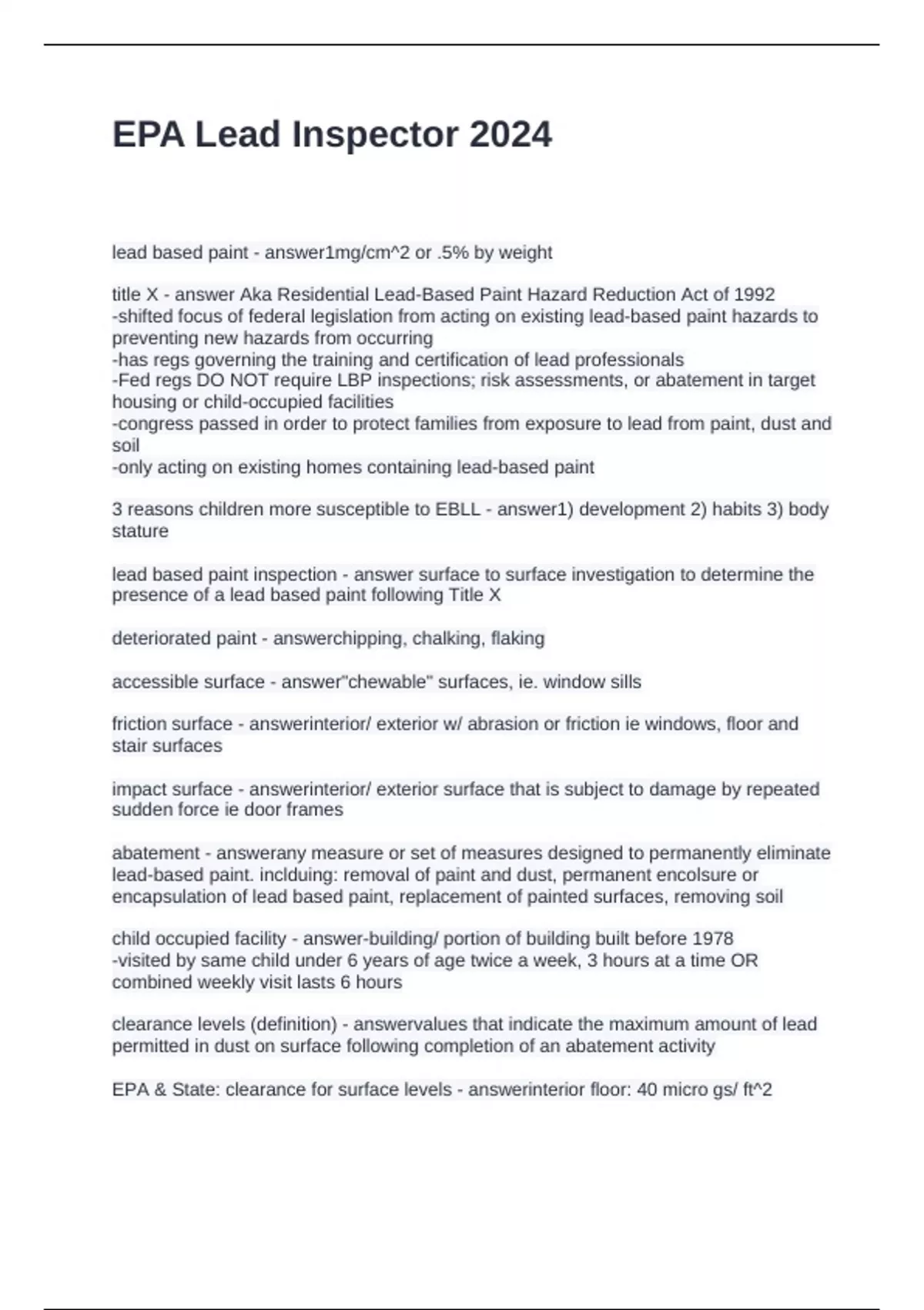 lead based paint inspection - answer surface to surface investigation to determine the