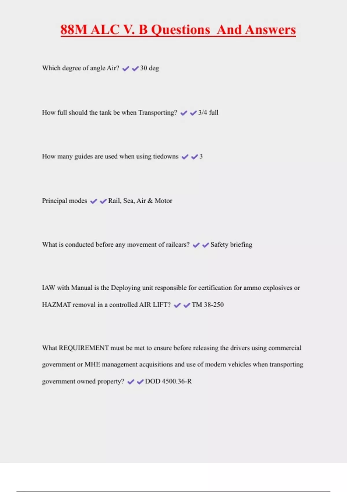 , 88M ALC V. B Questions And Answers