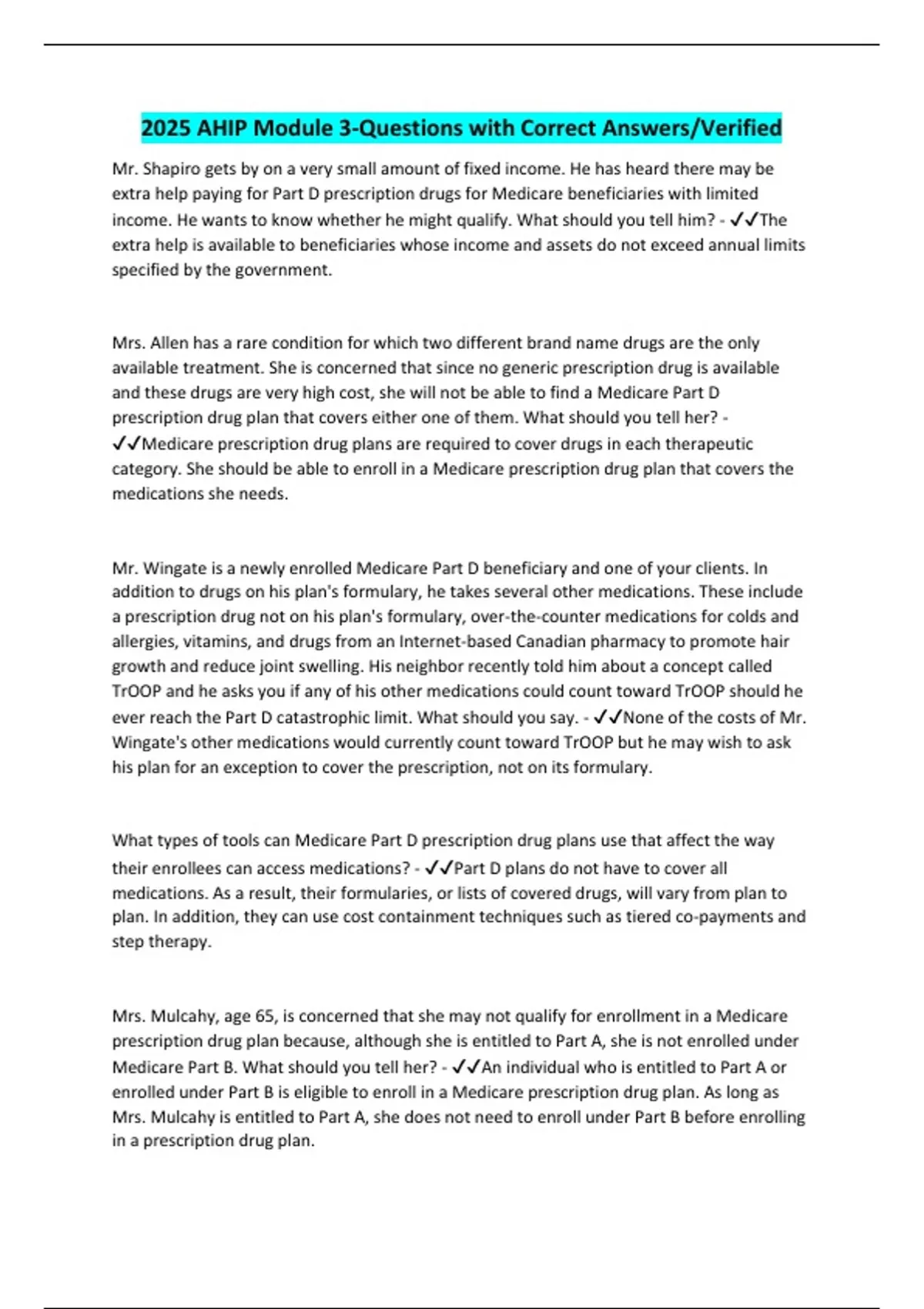 ever reach the Part D catastrophic limit. What should you say. - ✔✔None of the costs of Mr.