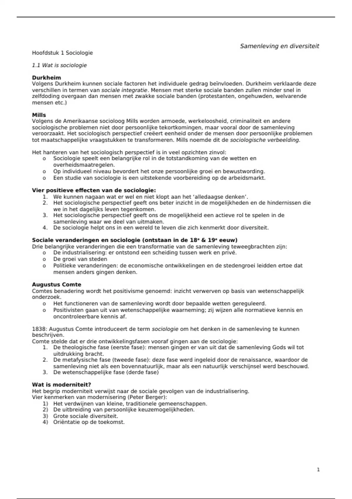 Hoofdstuk 1 Sociologie