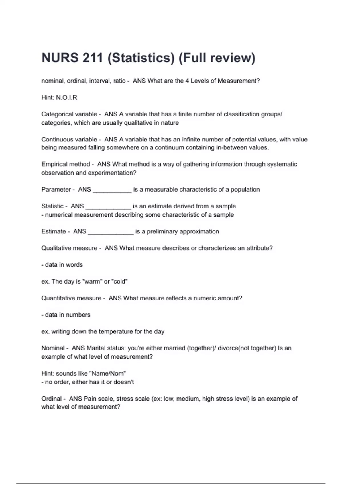 NURS 211 (Statistics) (Full review) Exam Questions with correct Answers 2024/2025( A+ GRADED 100% VERIFIED).