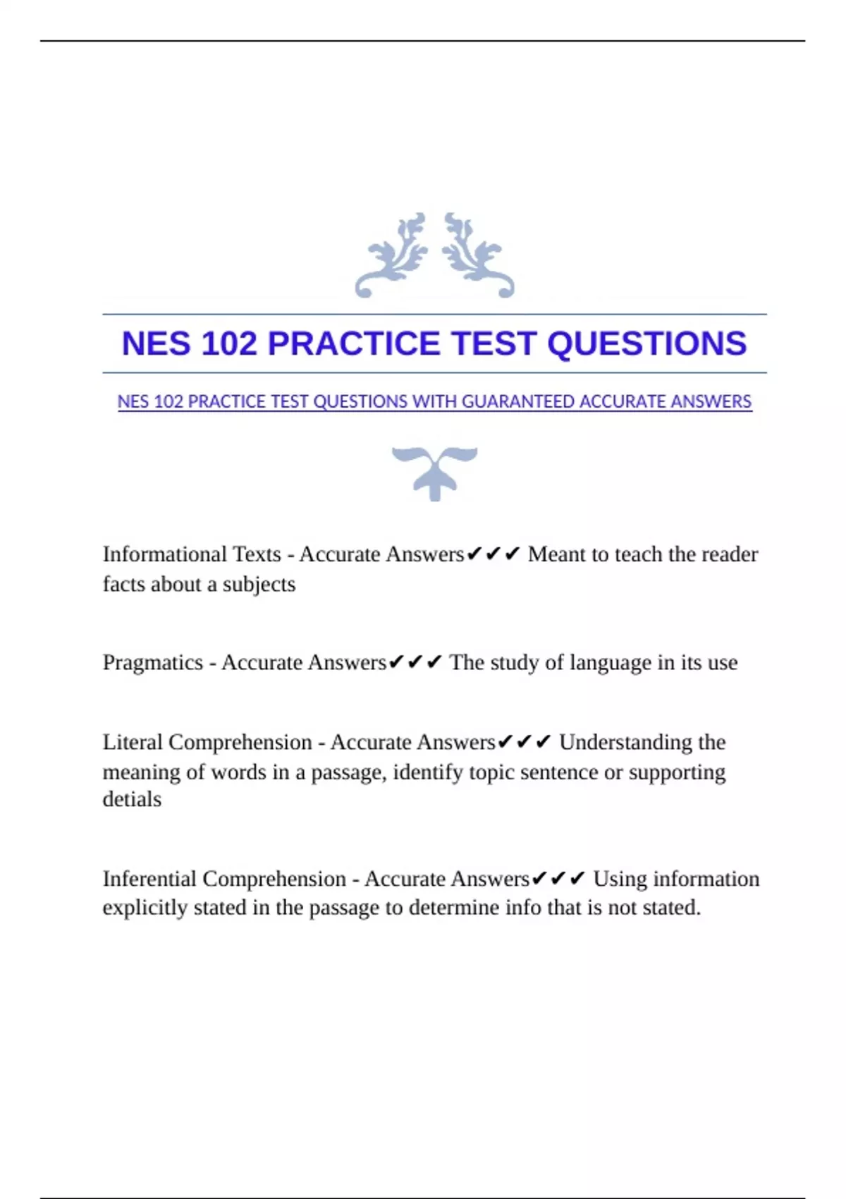NES 102 PRACTICE TEST QUESTIONS WITH GUARANTEED ACCURATE ANSWERS