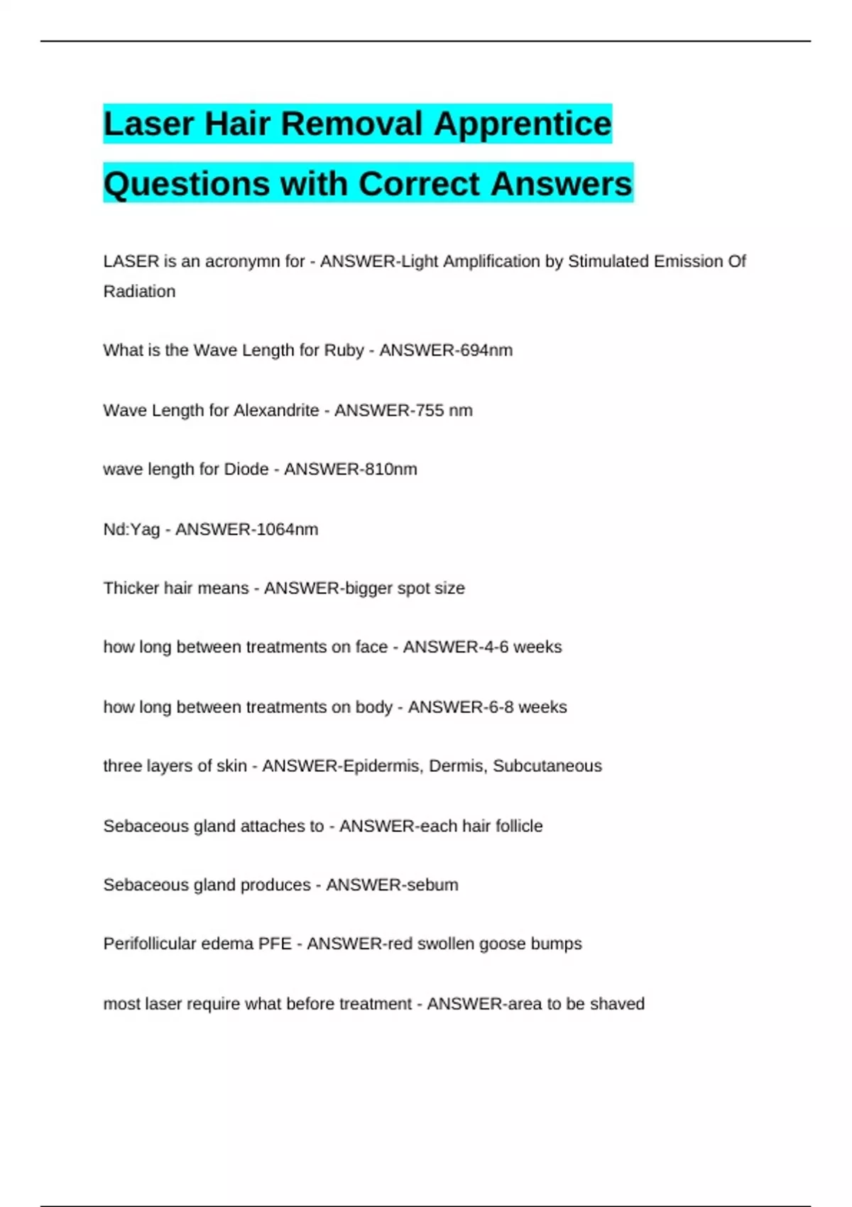 most laser require what before treatment - ANSWER-area to be shaved