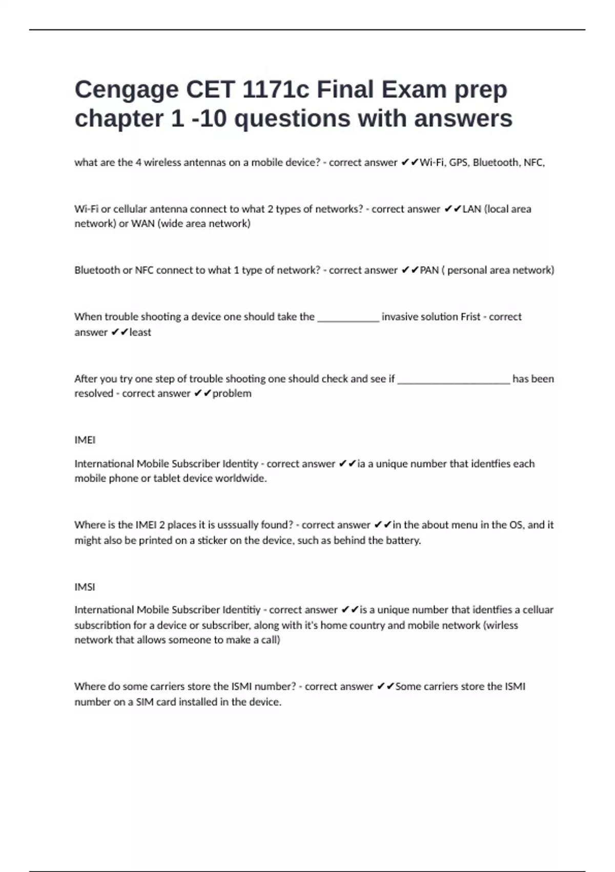 International Mobile Subscriber Identity - correct answer ✔✔ia a unique number that identfies each