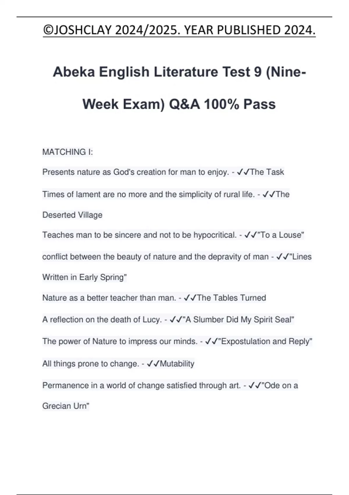 Presents nature as God's creation for man to enjoy. - ✔✔The Task