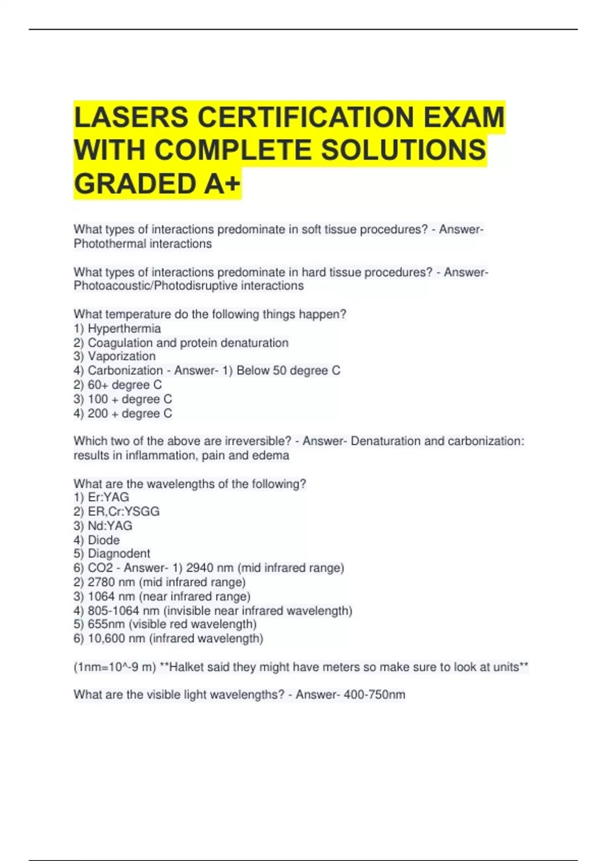 What are the visible light wavelengths? - Answer- 400-750nm