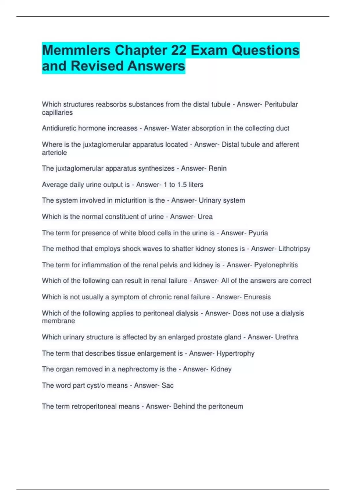 Which structures reabsorbs substances from the distal tubule - Answer- Peritubular
