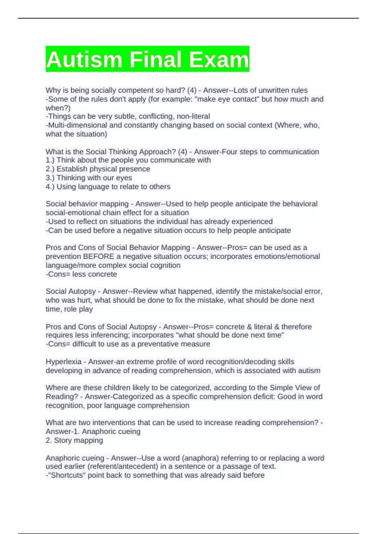Social Stories - Answer-1. provides guidance and direction for responding to social