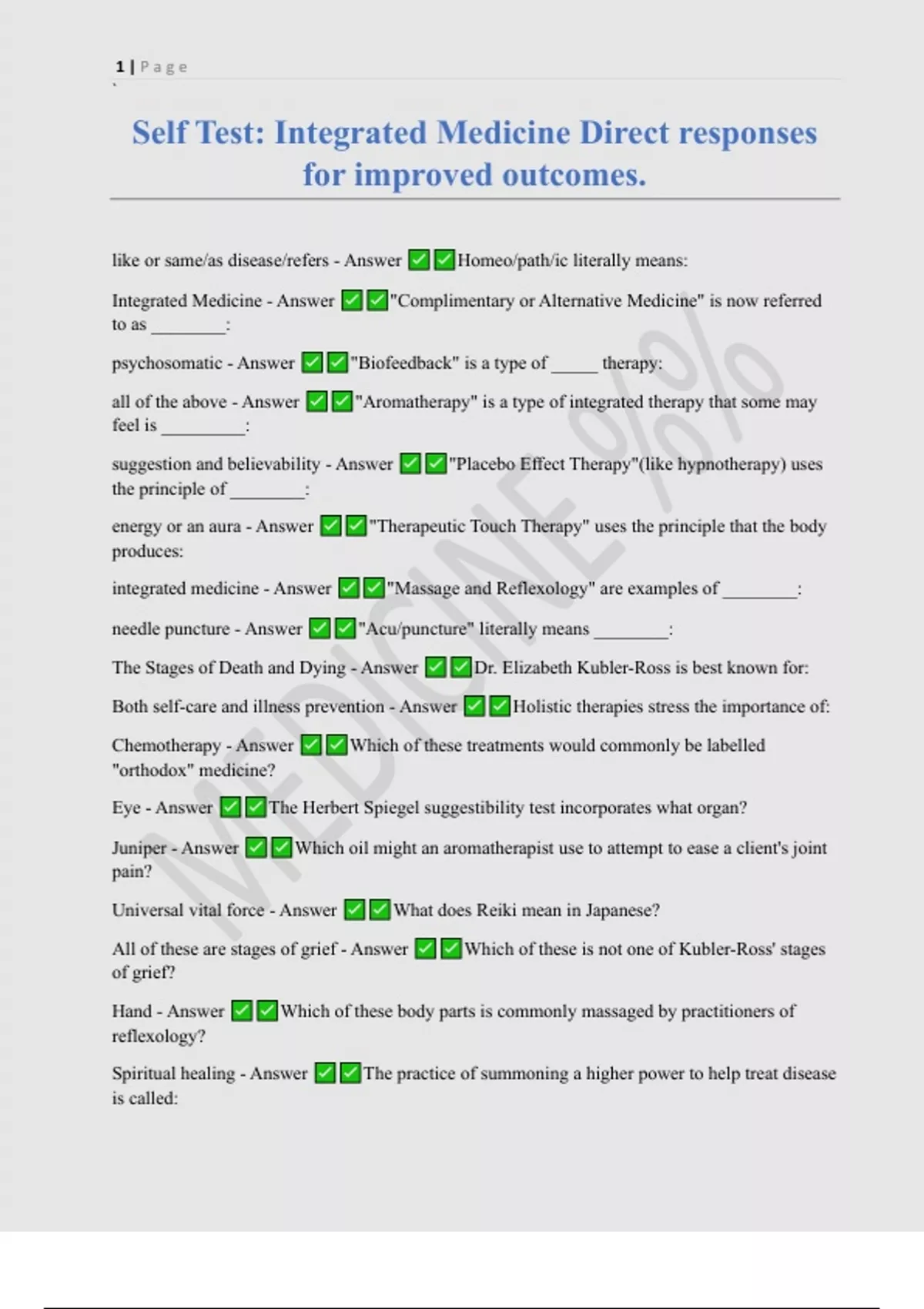 Self Test: Integrated Medicine Direct responses