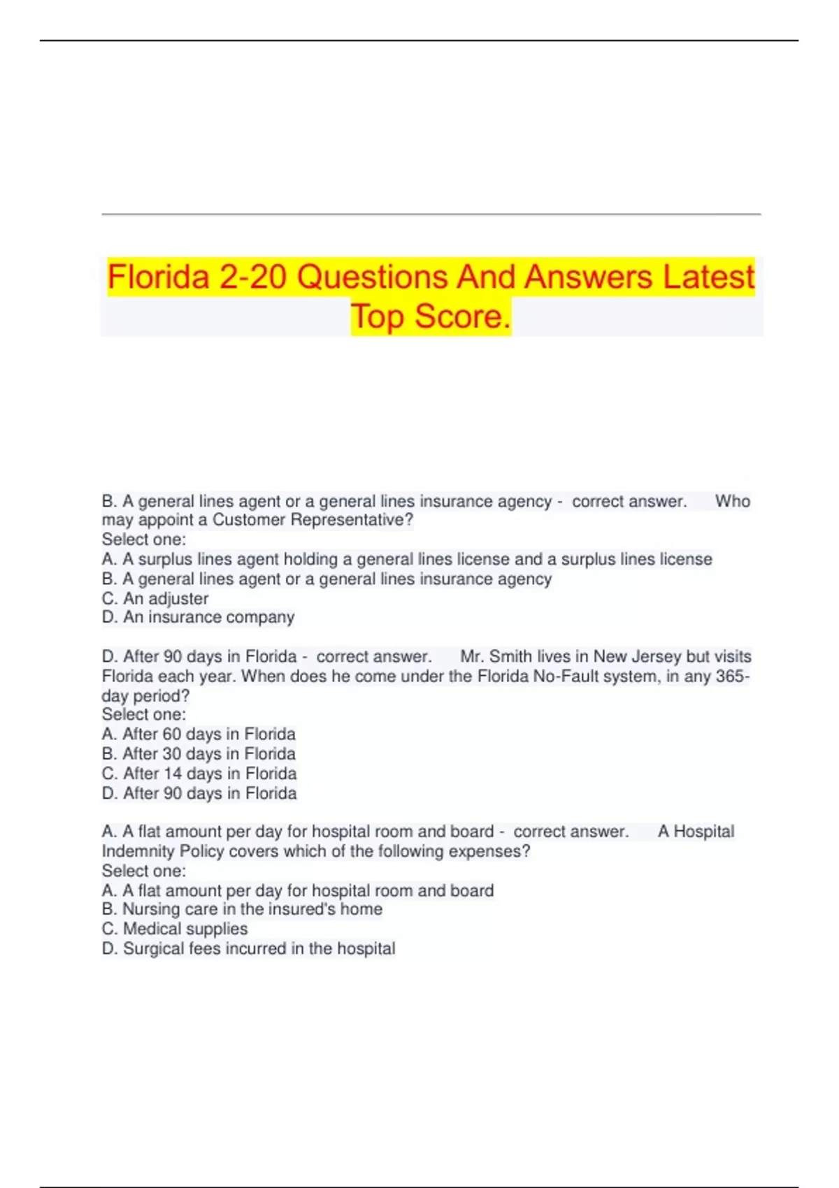 D. After 90 days in Florida - correct answer. Mr. Smith lives in New Jersey but visits