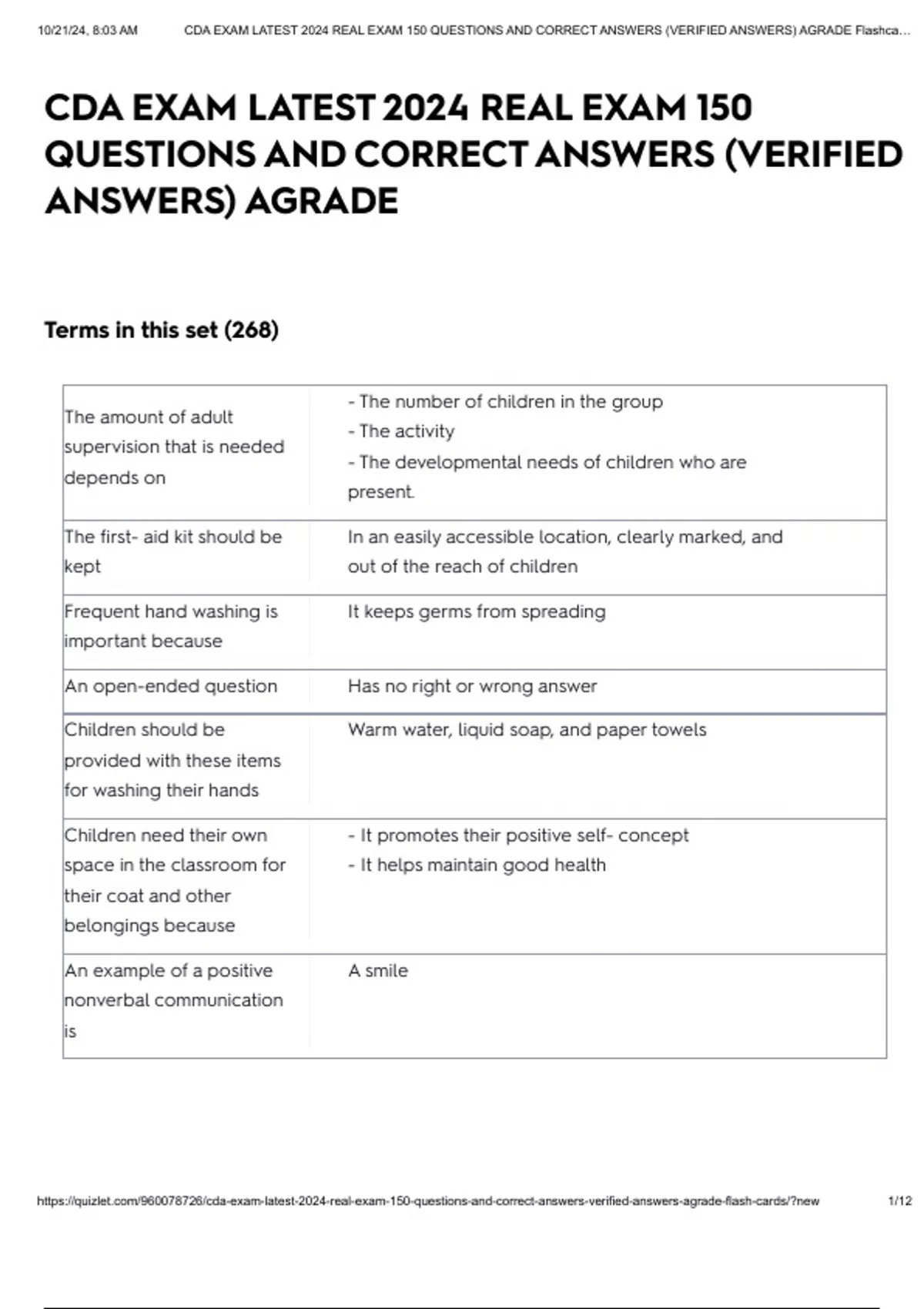 https://quizlet.com/960078726/cda-exam-latest-2024-real-exam-150-questions-and-correct-answers-verified-answers-agrade-flash-cards/?new 1/12