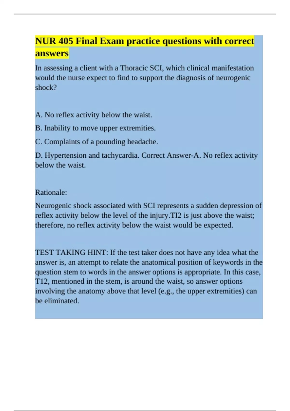 worsen the spinal cord injury; therefore, the nurse should determine how