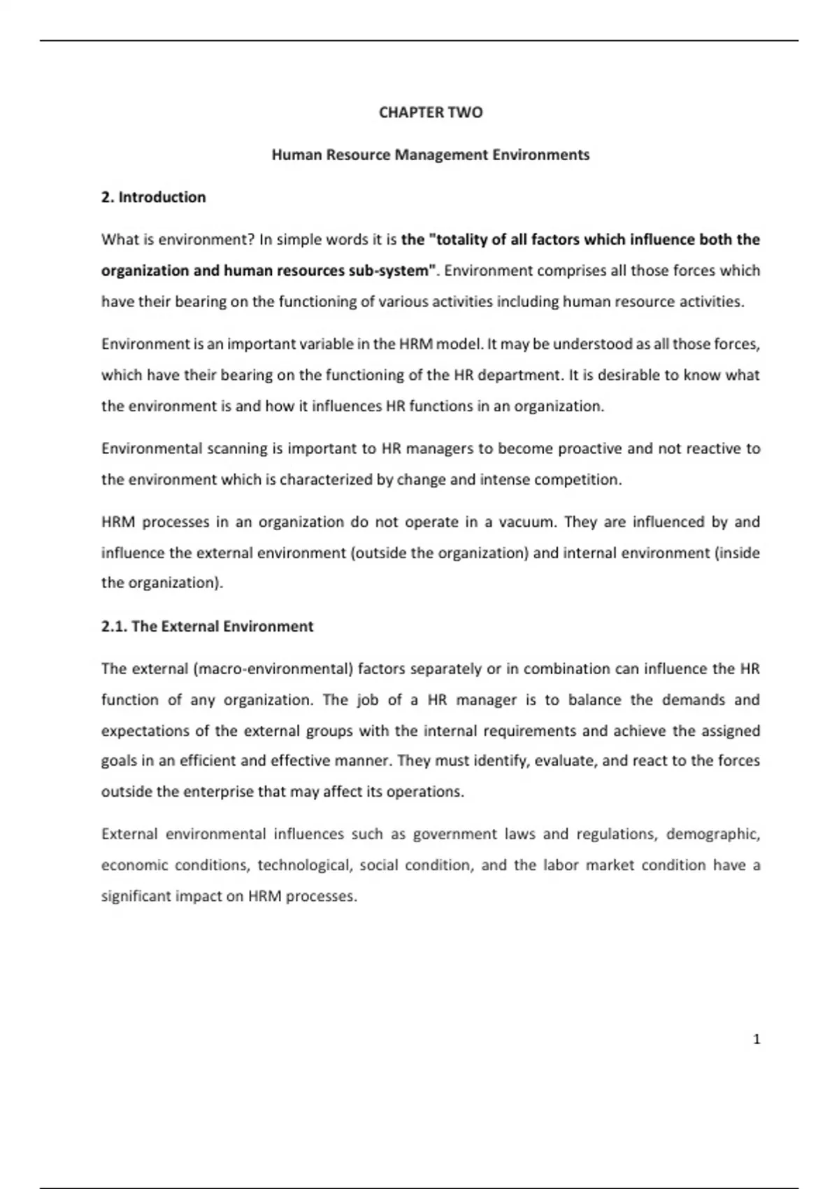the environment is and how it influences HR functions in an organization.
