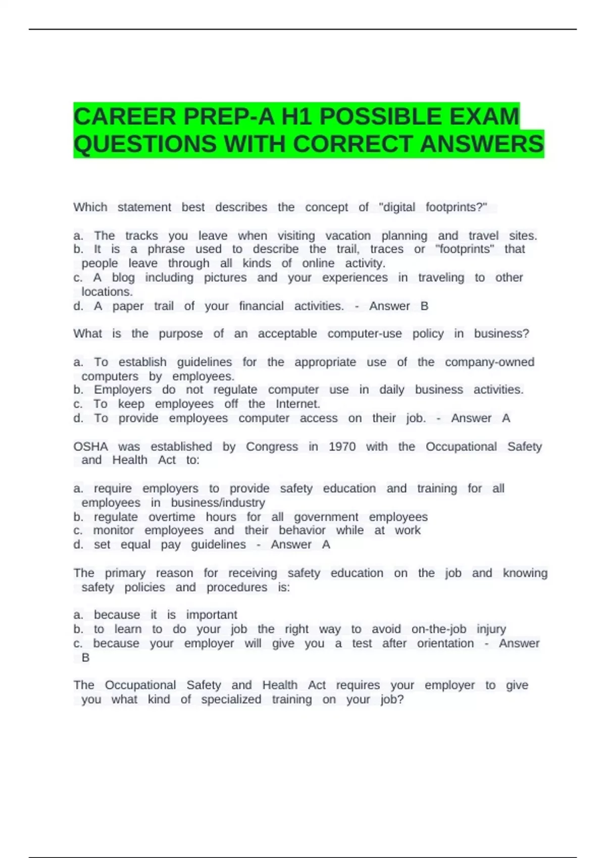 QUESTIONS WITH CORRECT ANSWERS