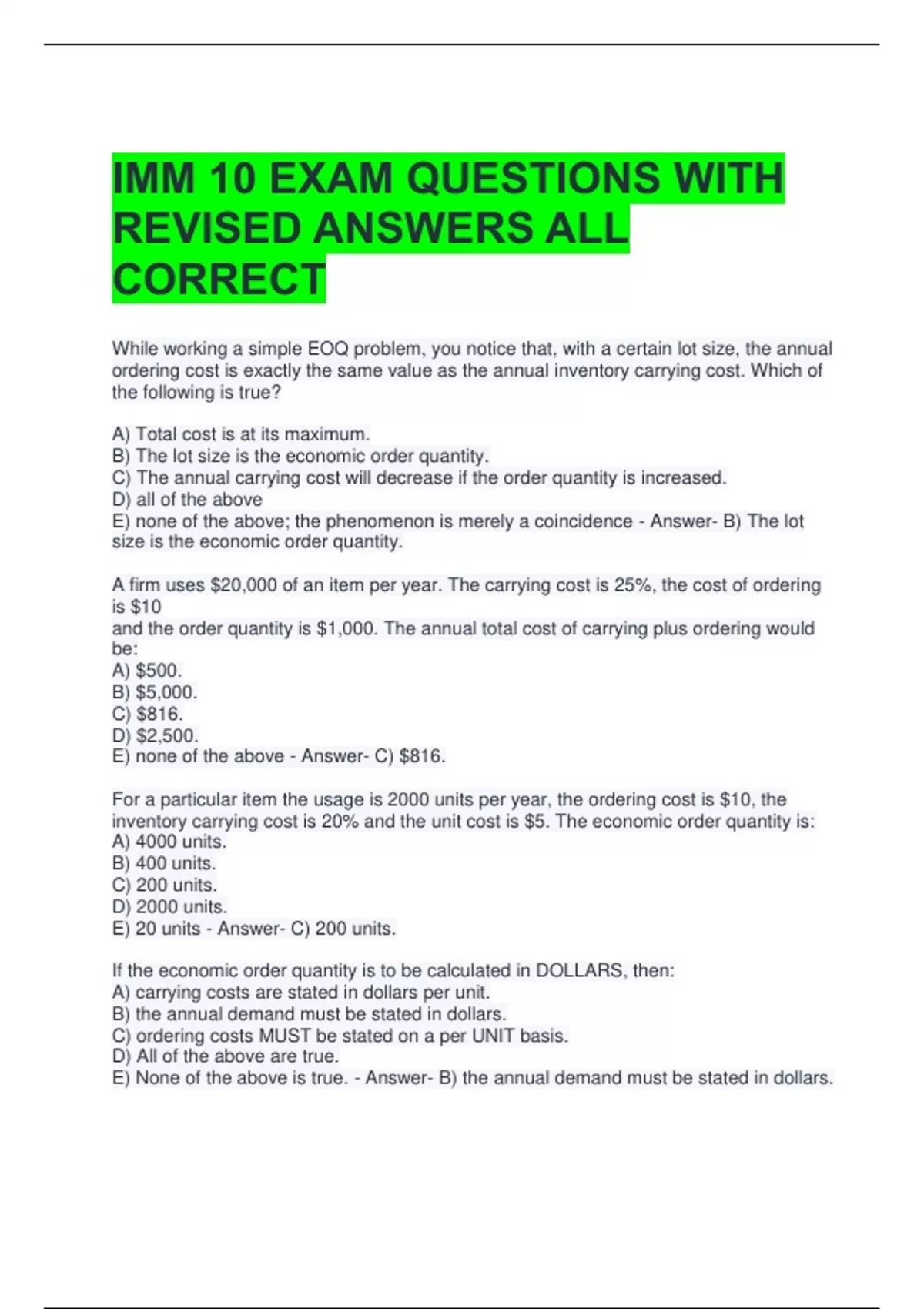 E) None of the above is true. - Answer- B) the annual demand must be stated in dollars.