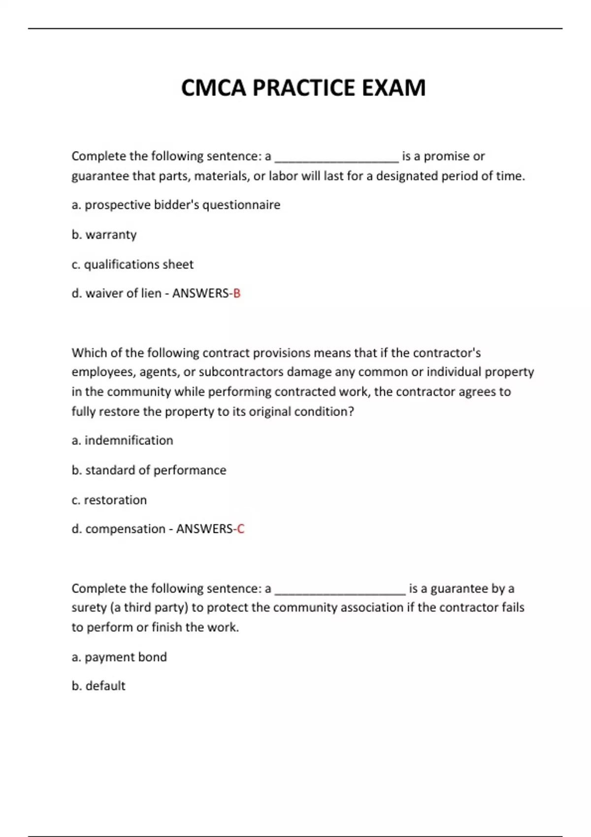 d. waiver of lien - ANSWERS-B