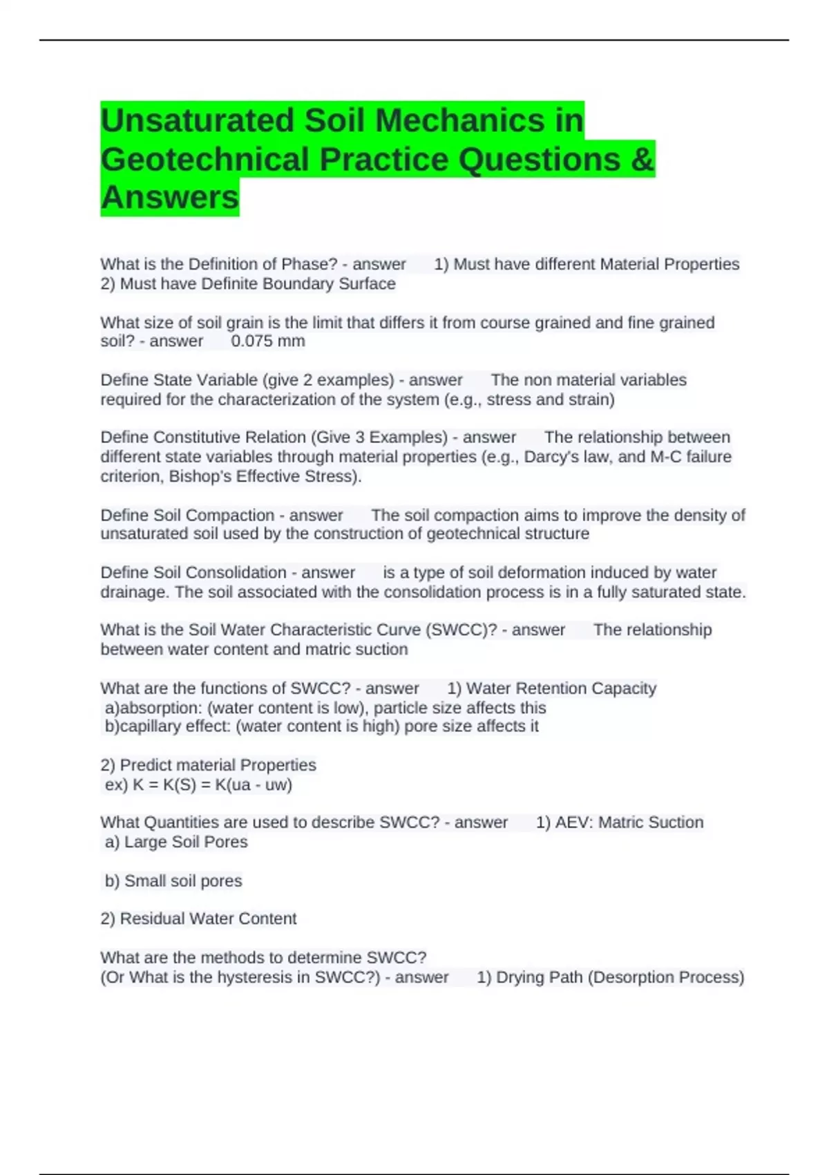 Geotechnical Practice Questions &